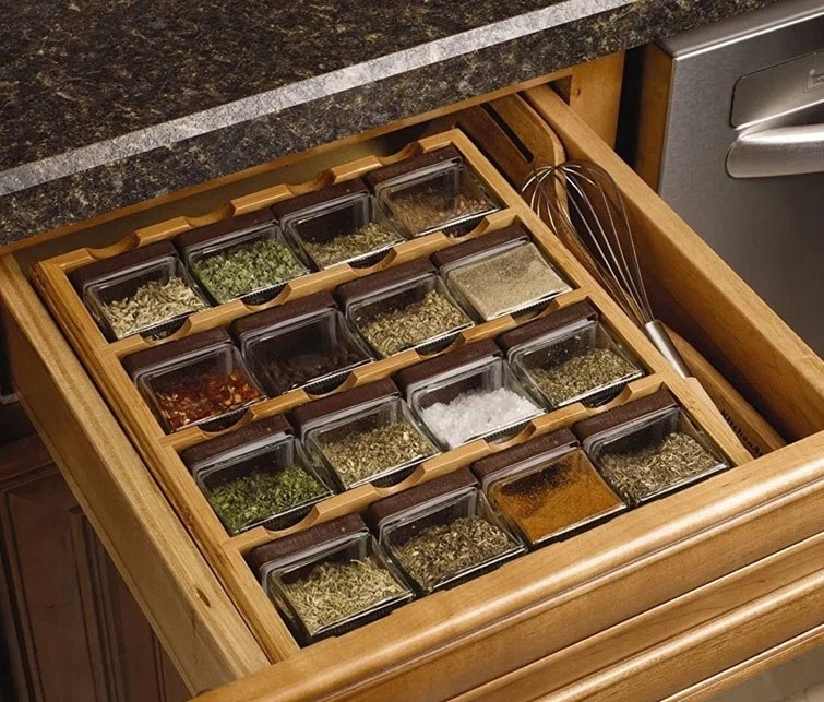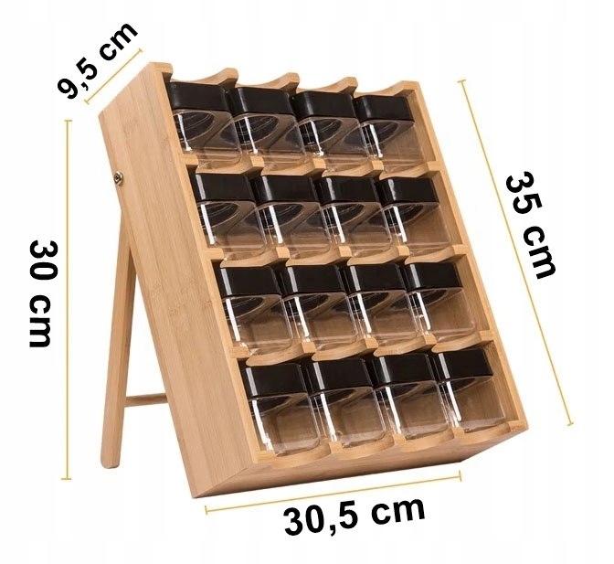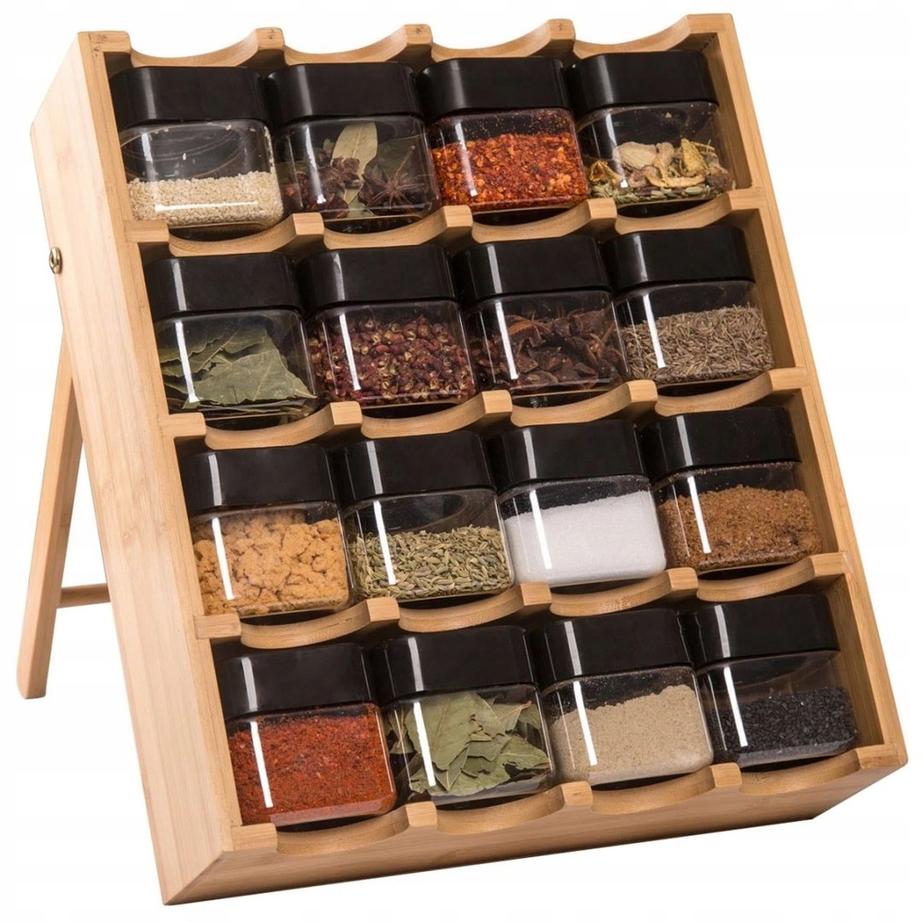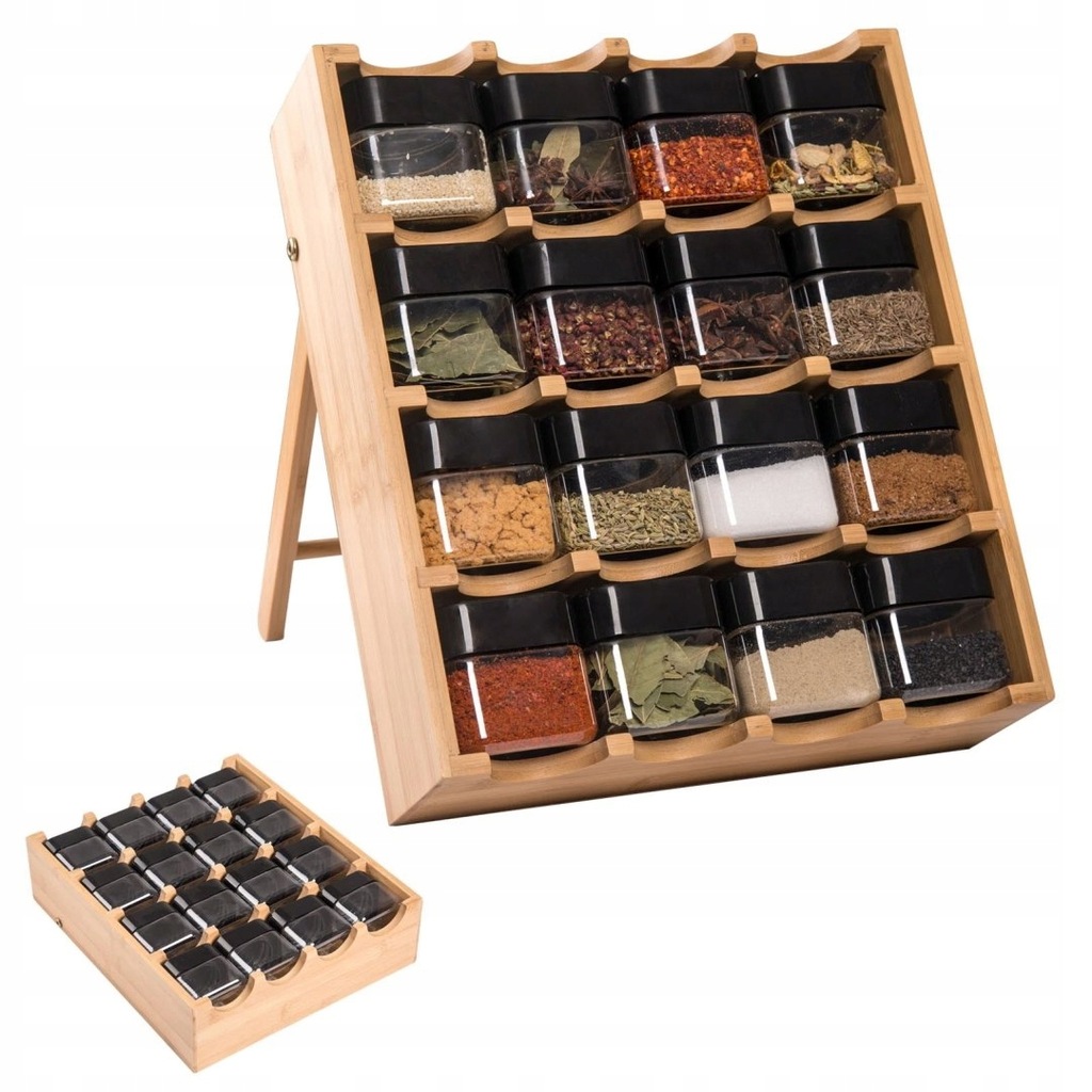 Każdy z 16 pojemników został zaprojektowany z myślą o wygodzie użytkowania, z łatwym dostępem, co pozwala szybko znaleźć potrzebną przyprawę podczas gotowania. Precyzyjne wykonanie stojaka gwarantuje, że jest on stabilny i bezpieczny w użyciu, zarówno kiedy stoi na blacie kuchennym, jak i gdy jest schowany w szufladzie. Jego kompaktowe wymiary sprawiają, że bez problemu zmieści się w większości kuchennych szafek, jednocześnie oferując wystarczająco dużo miejsca na wszystkie potrzebne przyprawy.