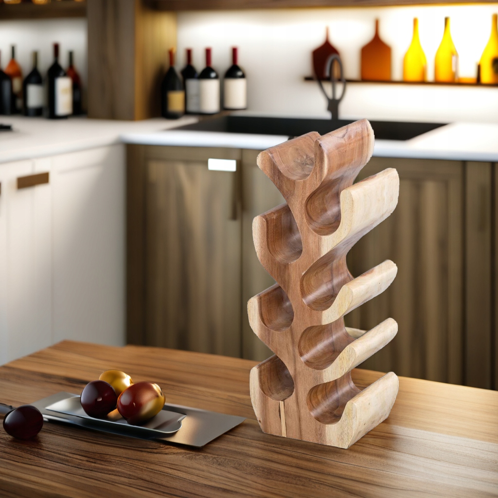 ✨ Egzotyczny stojak na wino z drewna – stylowy akcent do salonu i kuchni