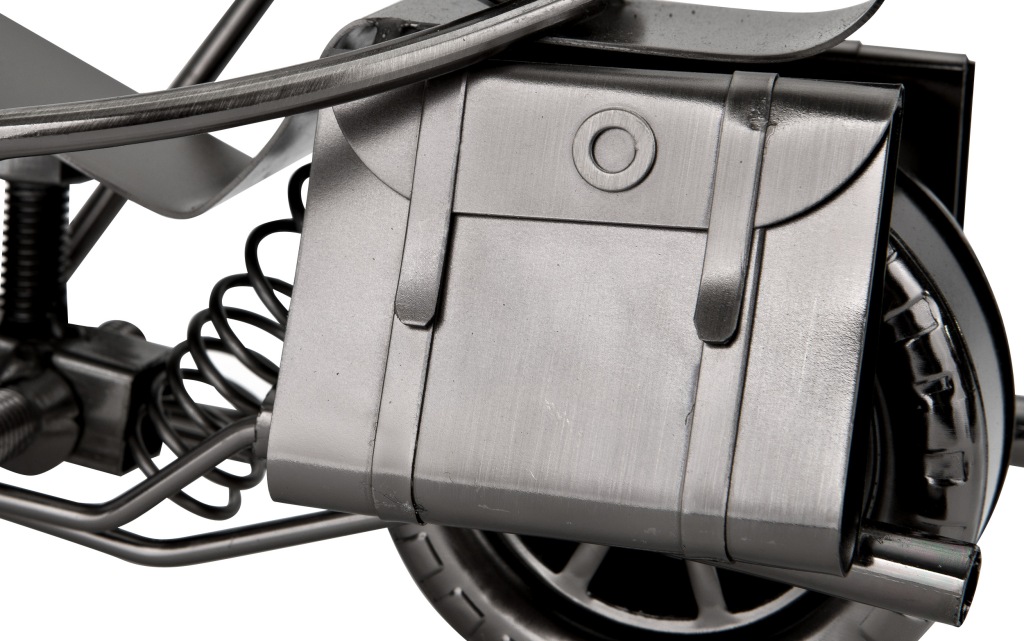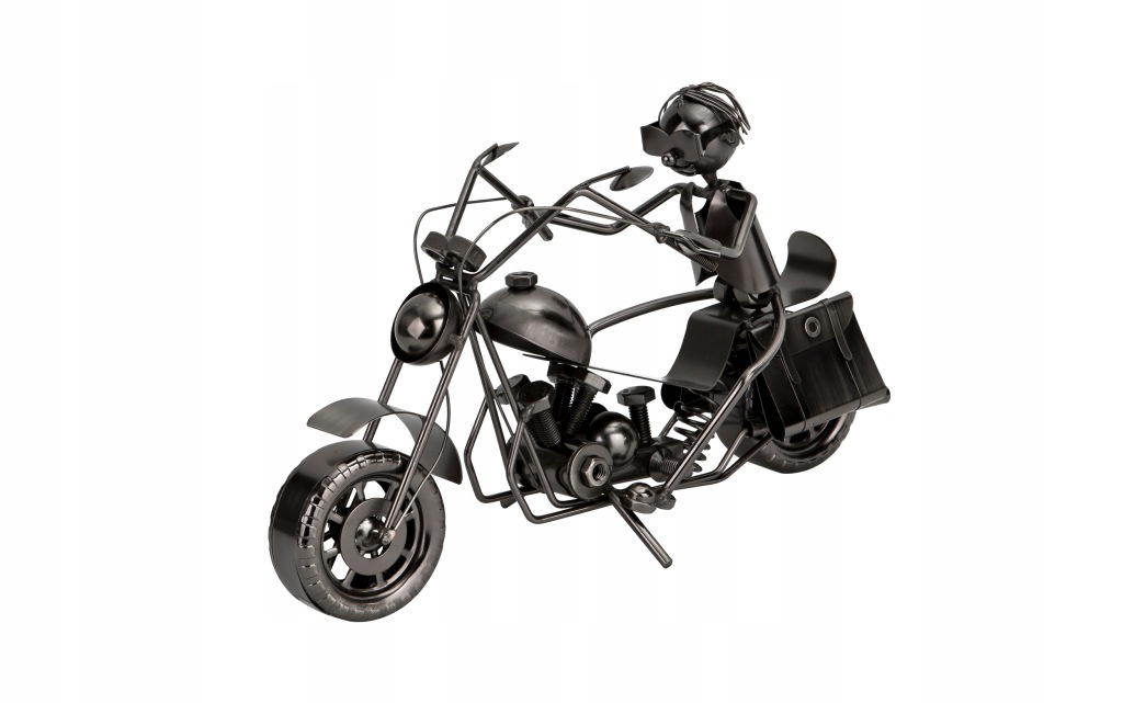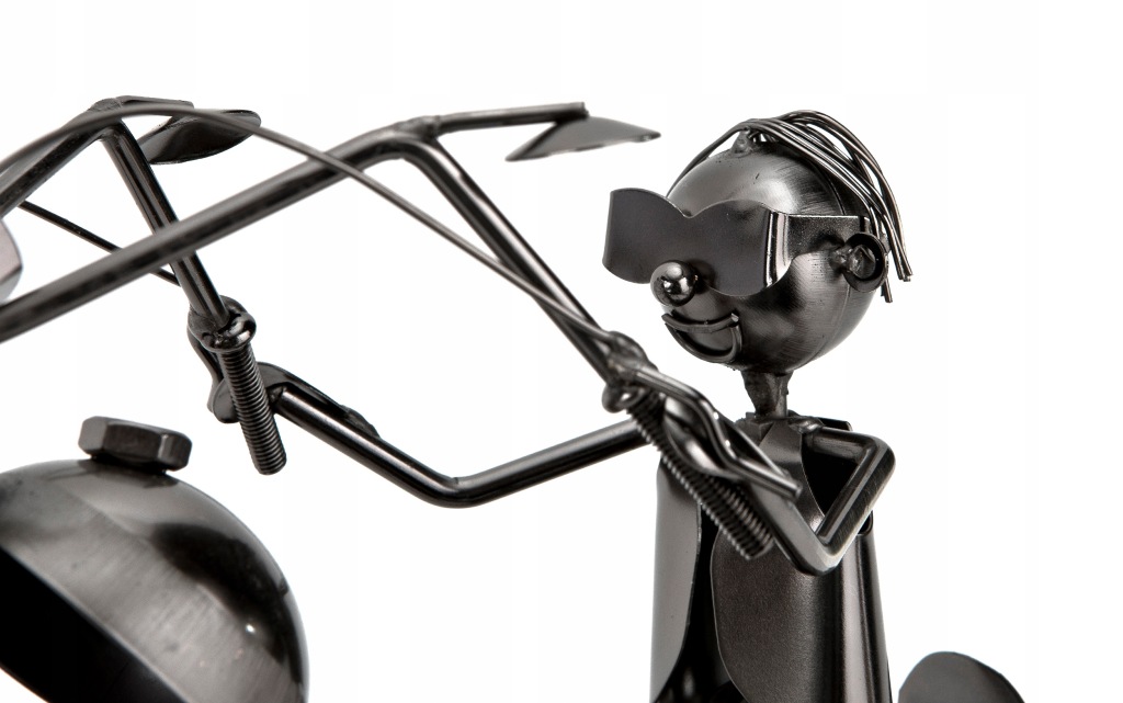 Stojak ma formę motocykla. Po umieszczeniu butelki w miejscu siedzenia stojak przybiera formę motocykla wraz z motocyklistą.