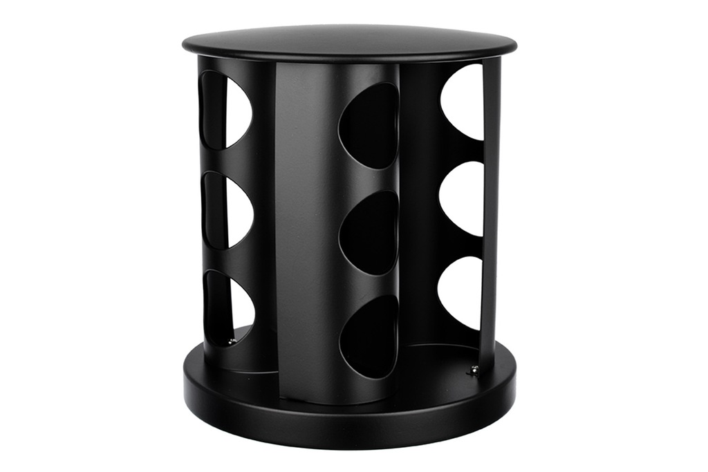 Obrotowy stojak ze stali nierdzewnej lakierowanej na kolor czarny na 12 pojemników z przyprawami.