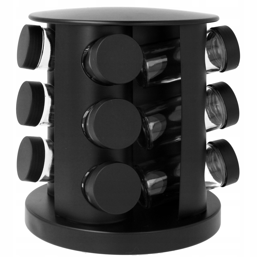 Obrotowy stojak ze stali nierdzewnej lakierowanej na kolor czarny na 12 pojemników z przyprawami.