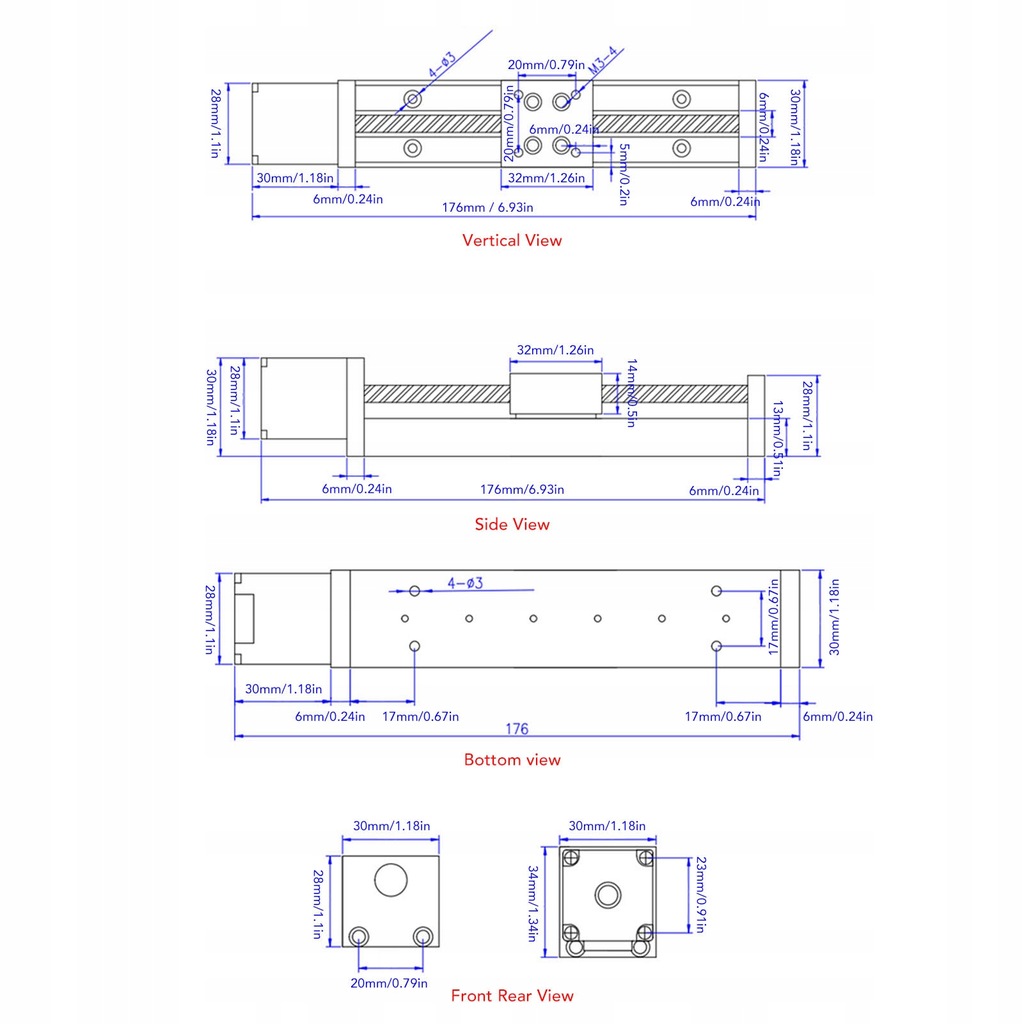 1. PARAMETRY: Skok efektywny wynosi 100 mm, kąt kroku 1,8 stopnia, średnica 6 mm, skok 1 mm, skok 1 mm (jeden obrót śruby pociągowej może przesunąć się o 1 mm).