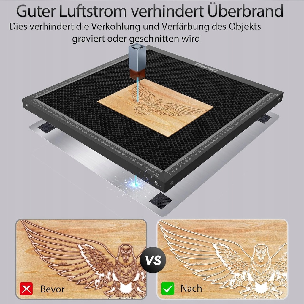 - Niesamowity efekt cięcia: To łóżko zostało specjalnie zaprojektowane do użytku z systemami cięcia laserowego. Otwarta konstrukcja z łatwością filtruje dym z ciętego materiału, znacznie zmniejszając plamienie i zwęglenie powstające podczas cięcia drewna i innych materiałów organicznych, a także zapobiegając przepaleniu. Mniej śladów przypaleń i czystsze cięcia. Poprawia to znacząco wydajność i jakość cięcia.