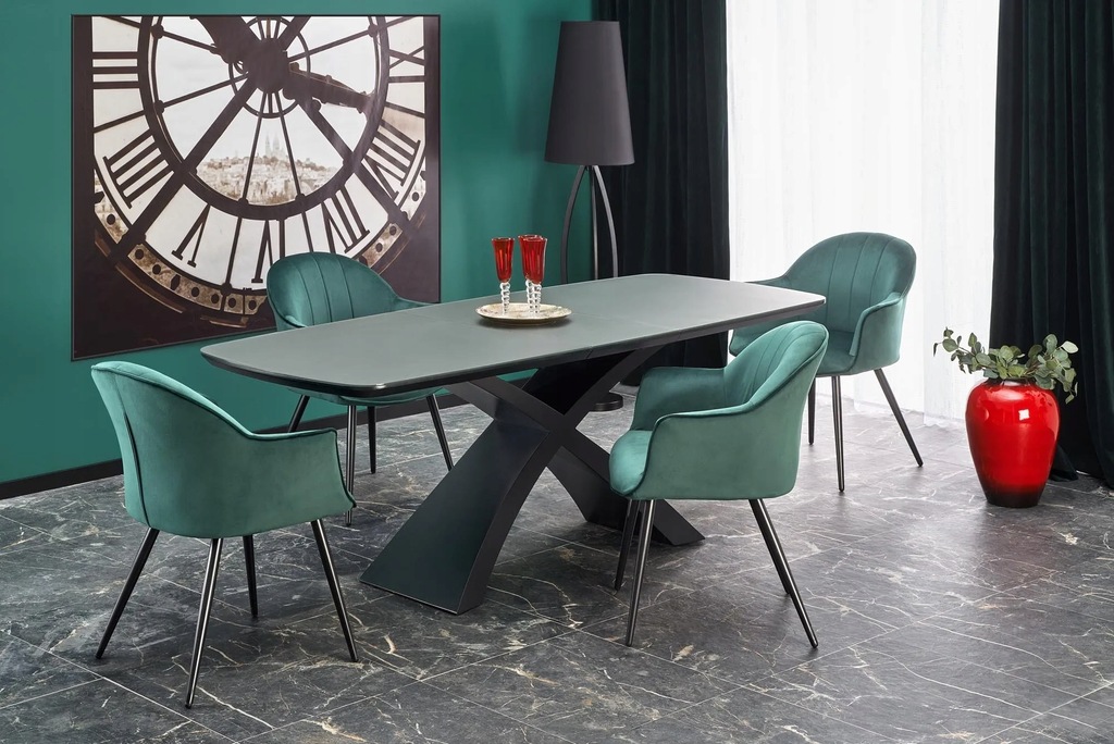 Stół SILVESTRO od HALMAR to połączenie elegancji, trwałości i nowoczesnego designu. Zaprojektowany z myślą o współczesnych wnętrzach, idealnie pasuje do salonu, jadalni czy przestrzeni biurowych. Jego unikalna podstawa w kształcie litery "X" nadaje mu wyjątkowego charakteru, a masywna konstrukcja zapewnia stabilność i wytrzymałość.