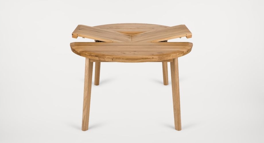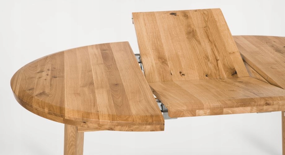 W podstawowym ustawieniu, Tondo ma kształt okręgu o średnicy 100 cm. To pozwala umieścić go w każdym pomieszczeniu, nawet w wyjątkowo wąskiej kuchni. Po rozłożeniu, długość blatu zwiększa się do 145 cm, co pozwala na komfortowe ugoszczenie nawet 6 osób.