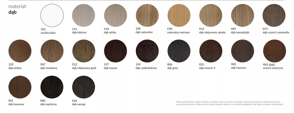 Dostępna kolorystyka drewna