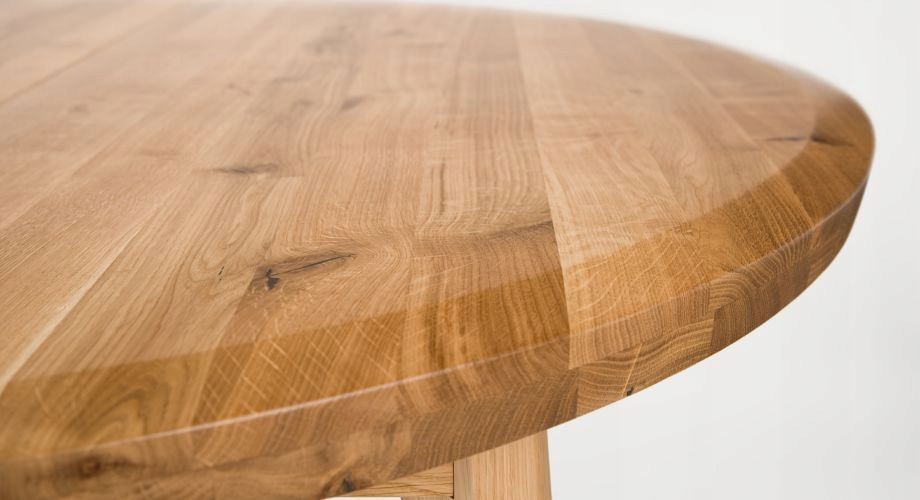 Wyjątkowy, uniwersalny stół domowy. Stabilność konstrukcji gwarantują nogi z litego drewna dębowego. Blat, wykonany z dębowej klejonki, został wyfrezowany na krawędziach w bardzo oryginalny sposób, co tworzy ciekawy, wyrafinowany efekt.