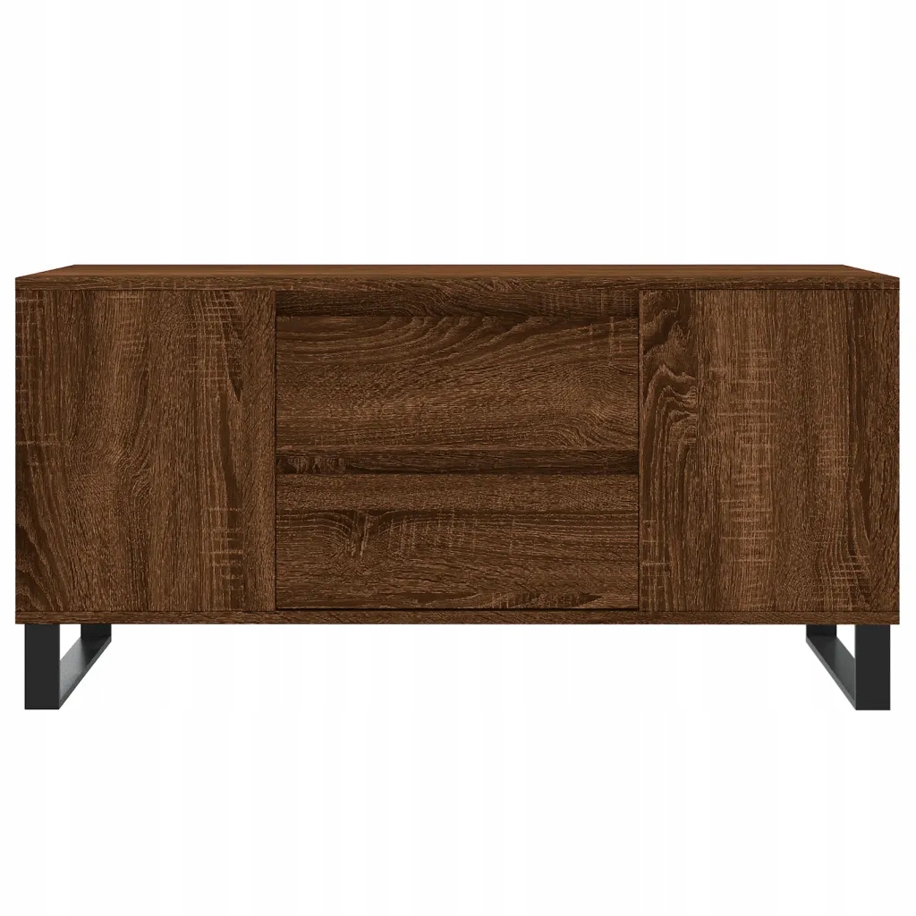 Stolik kawowy drewniany z szufladami i metalowymi nogami