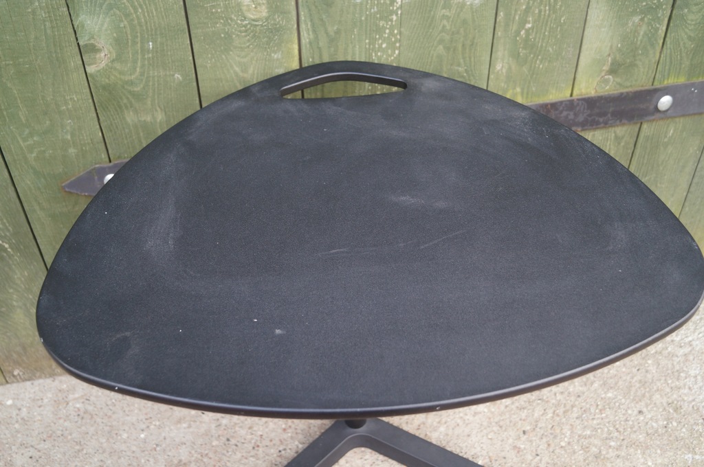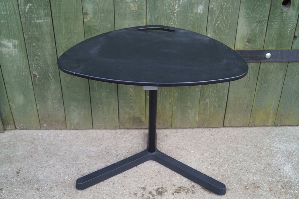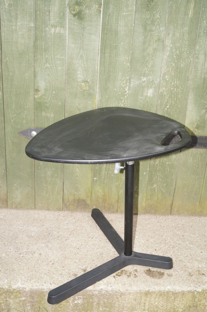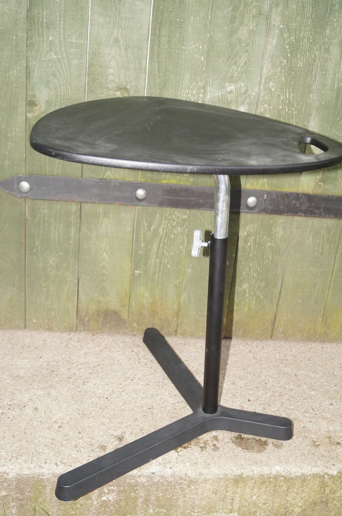Wysokość regulowana od 53 do 80 cm. blat 60x49. Blat można lekko pochylić. Stan jak na zdjęciach - normalne ślady użytkowania - proszę zapoznać się ze zdjęciami. Konstrukcja cała i stabilna. Blat do odświeżenia.