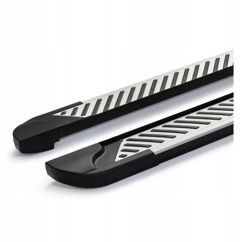 Dzięki aerodynamicznemu wzornictwu i sztywnemu profilowi wykonanemu z aluminium, progi zapewniają maksymalną nośność minimum 120kg. Nie boją się one warunków atmosferycznych, chemii czy soli drogowej, a powierzchnia antypoślizgowa zapewnia dodatkowe bezpieczeństwo..