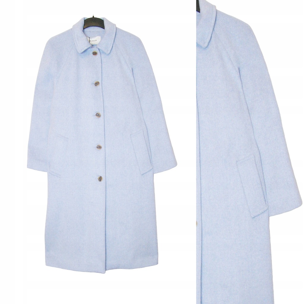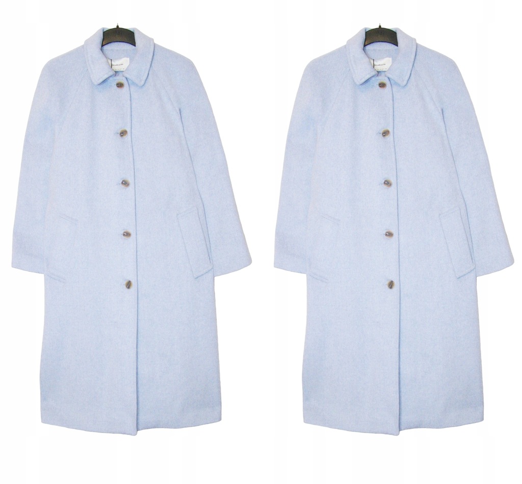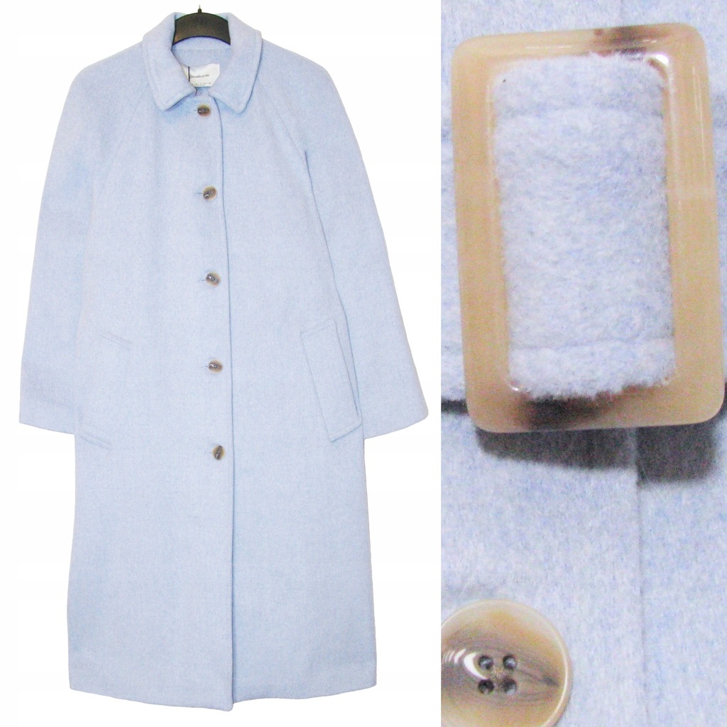 Cechy produktu: luźny i rozszerzany krój, na podszewce, bez ocieplenia, kołnierz, jednorzędowe zapięcie na kontrastowe guziki, długi i reglanowy rękaw, 2 kieszenie, szlufki i pasek z klamerką, nowy, z metką