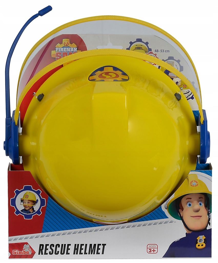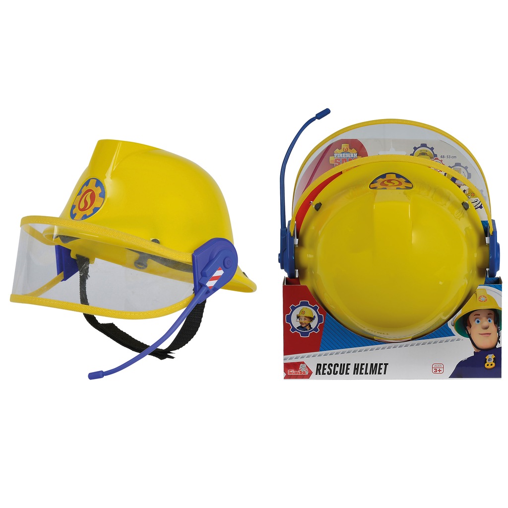 Niesamowity, oryginalny kask Strażaka Sama jest koloru żółtego. Wyposażony jest w tasiemki z rzepami, które zapina się pod brodą, aby kask lepiej trzymał się na głowie dziecka. Posiada również granatowy mikrofon atrapę (nie posiada funkcji prawdziwego urządzenia) oraz opuszczaną, przezroczystą ochronę na oczy.