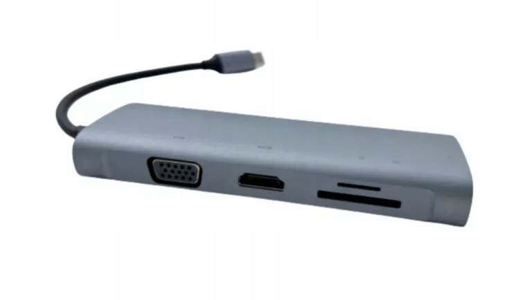 Typ urządzenia:HUB/adapter11W1Gniazda:1xUSB-C3.0 z PD do 100W 1xUSB-C3.0 1xHDMI4K 30Hz / 2K 60Hz 3xUSB-A 3.0 1xUSB-A 2.0 1x na kartę SD 1x na kartę microSD 1x jack 3.5mm 1x VGA 1080p 1x LAN (do 1GB/s)Napięcia:5V/9V/12V/15V/20V (5A)Obudowa:aluminiumWymiary:115,7*49*17mm