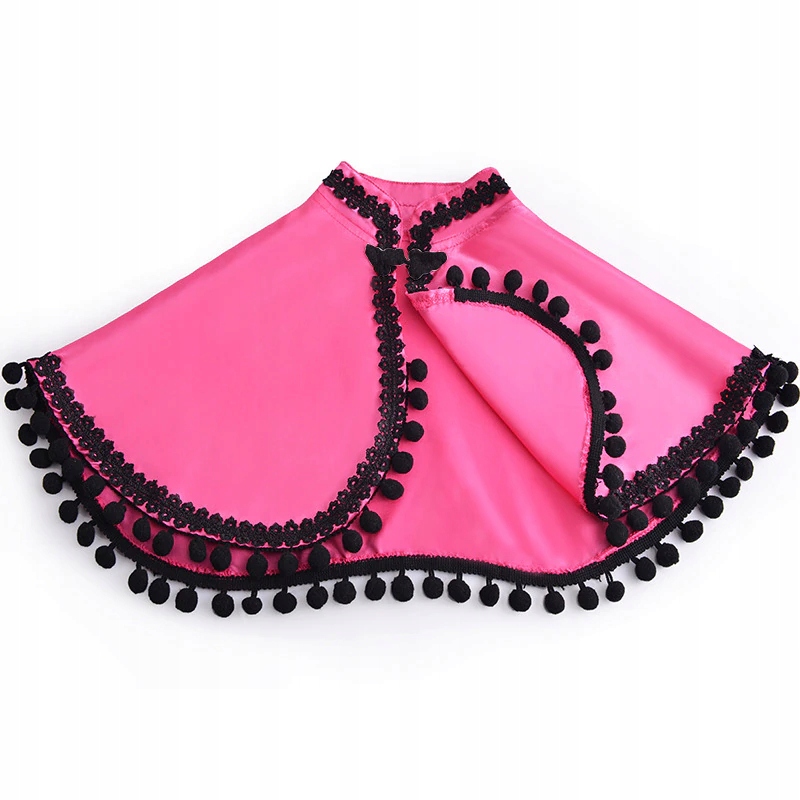 ✨Zestaw składa się z sukienki w granatu, różowej pelerynki czarnymi frędzlami, korony, berła, rękawiczek oraz spinki z warkoczami,