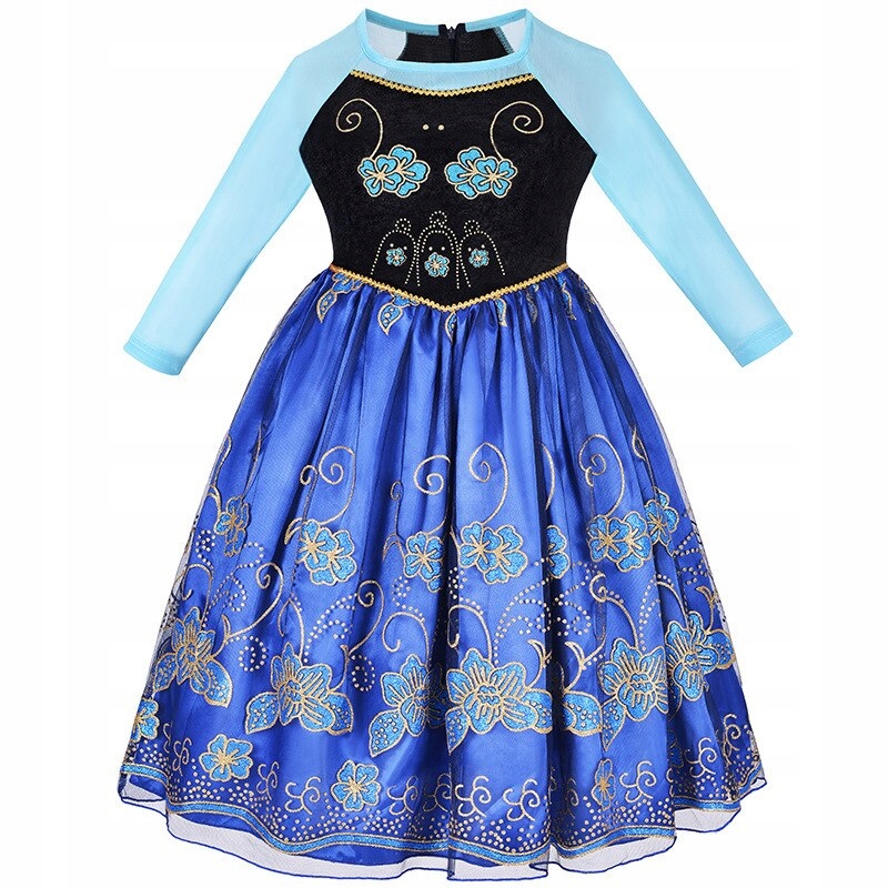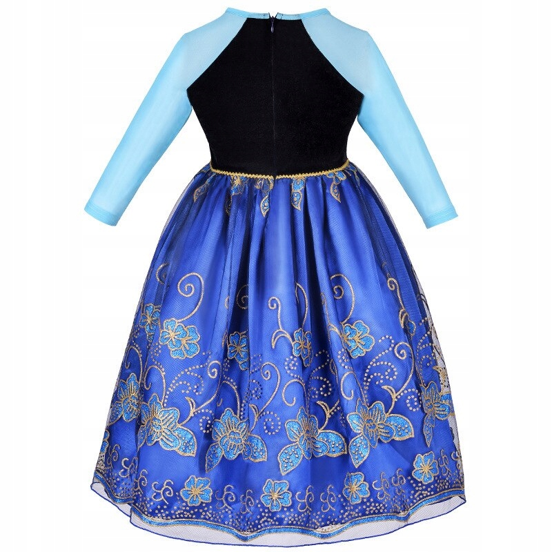 STRÓJ PRZEBRANIE SUKIENKA ANNA KRAINA LODU KSIĘŻNICZKA BAL KARNAWAŁ 116 / 122 CM (Z METKI 130) HAFTOWANA ZESTAW