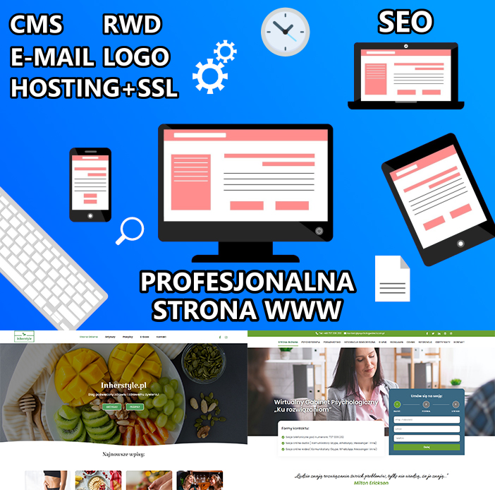 Zajmujemy się projektowaniem, tworzeniem profesjonalnych, nowoczesnych oraz w pełni funkcjonalnych stron internetowych WWW. Wykonaliśmy już ponad 200 projektów, w tym sklepów, oraz blogów! (Chętnie podzielimy się całym naszym portfolio!). Zamawiając u nas stronę Internetową otrzymasz: