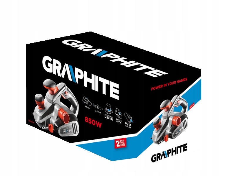 Specjalistyczny strug elektryczny GRAPHITE 59G678 o mocy 850 W, przeznaczony do obróbki drewna.