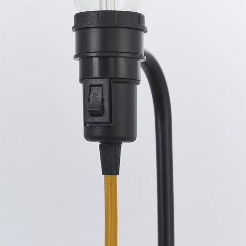Designerska lampa podłogowa Studio, wykończona w eleganckiej matowej czerni, z kontrastującym żółtym materiałem, z łatwo dostępnym włącznikiem/wyłącznikiem, idealna w połączeniu z żarówką LED, zapewniająca niezbędny, modny wygląd.