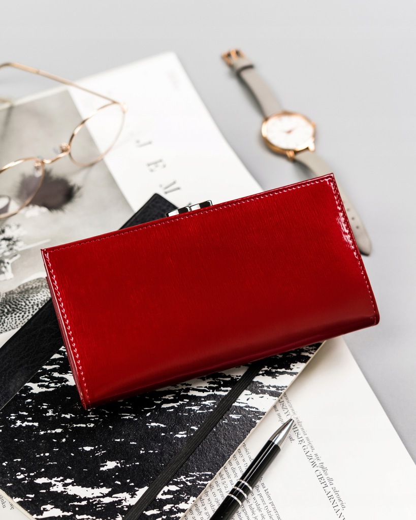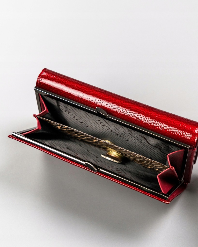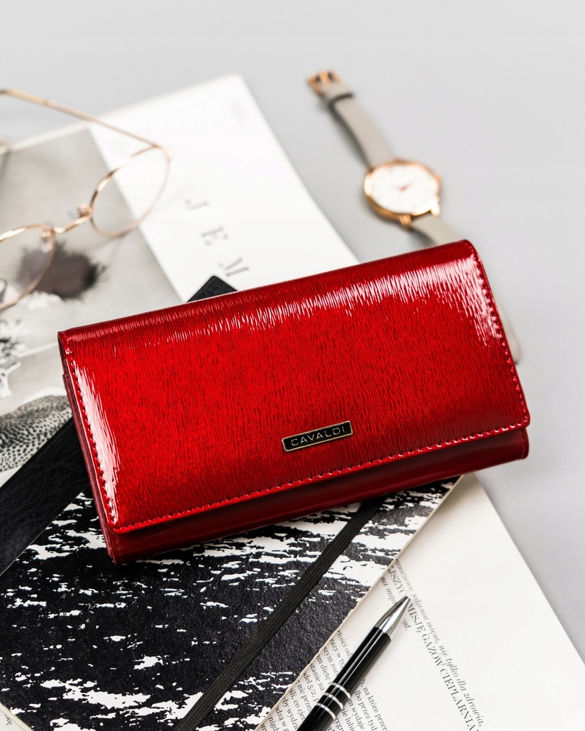 Skórzany portfel damski lakierowany Cavaldi® czerwony
