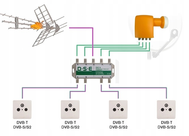 Sumator RTV/SAT x4 DSE SSC4 do konwertera typu quad.