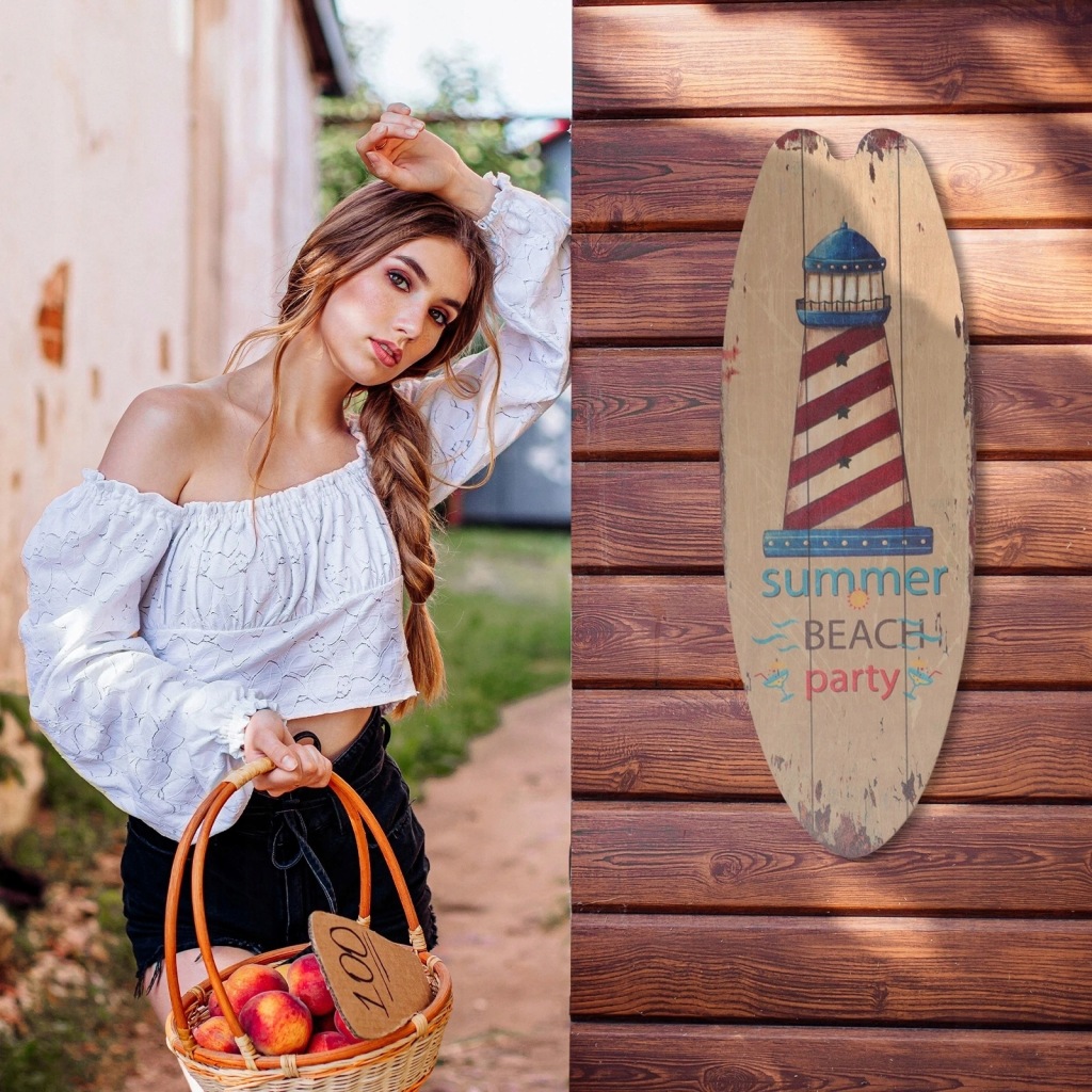Ten drewniany znak deski surfingowej może pomóc dodać radosnej atmosfery i sprawić, że ludzie poczują się szczęśliwi.