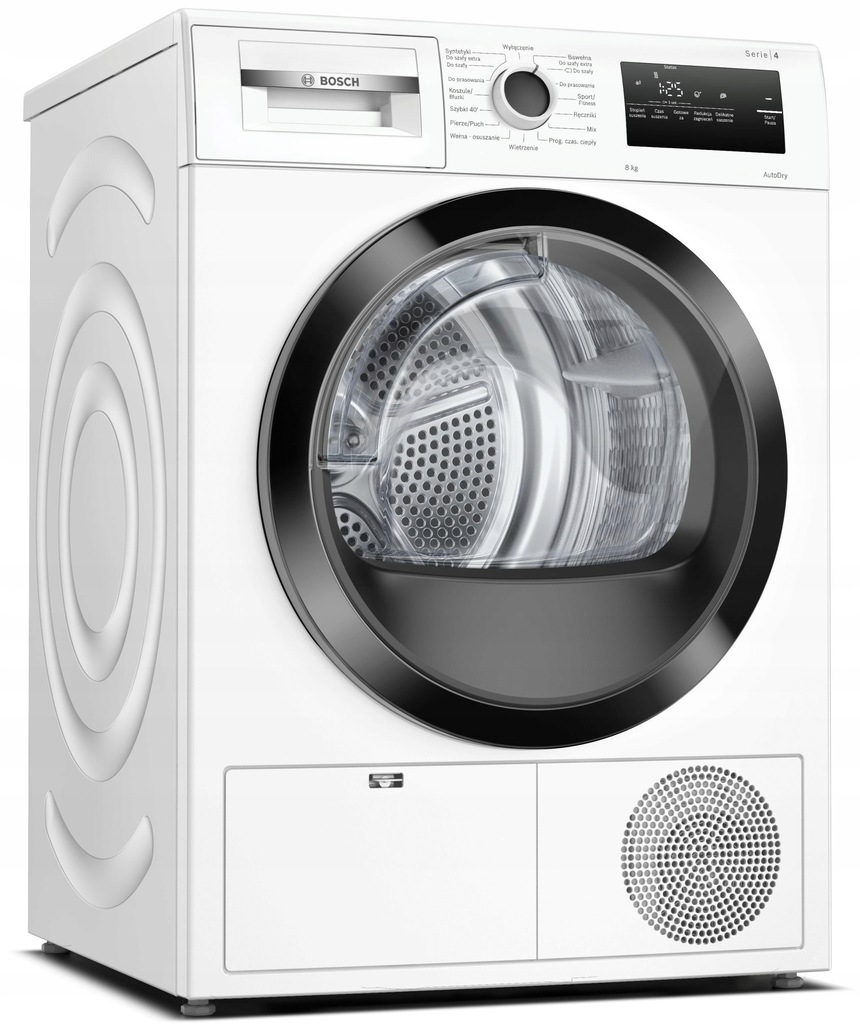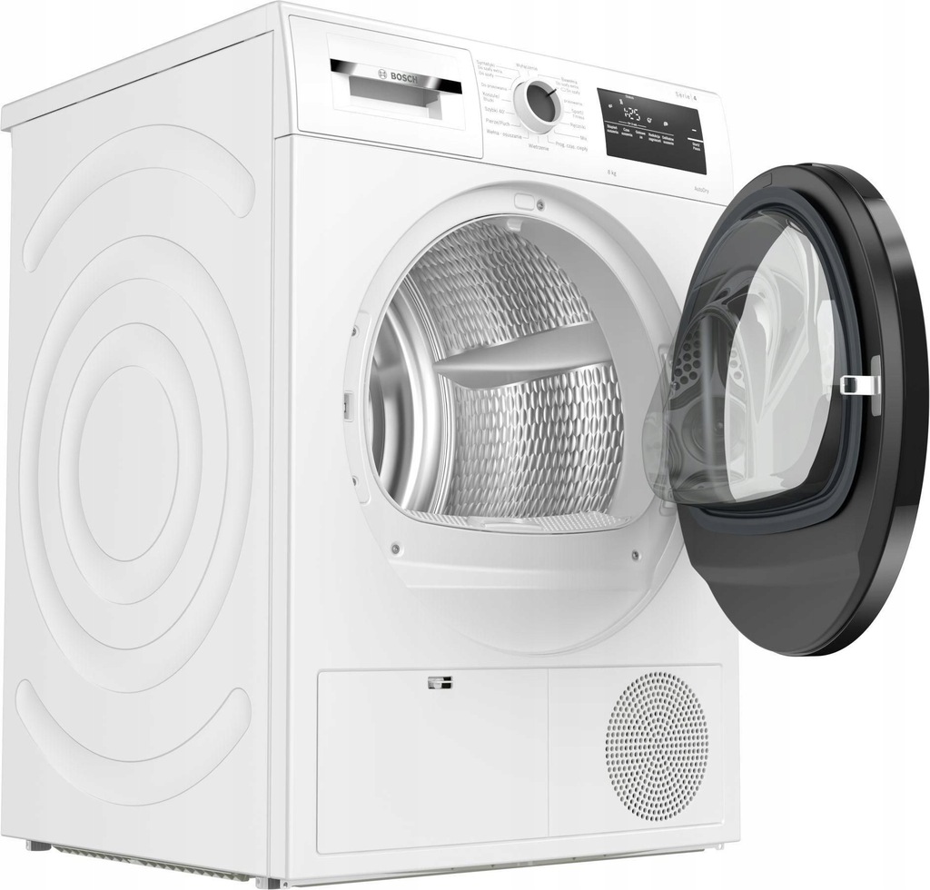- Anti Vibration Design, Filtr Easy Clean, Sensitive Drying System: Duży, Bęben ze stali szlachetnej, Sygnał akustyczny informujący o zakończeniu programu, Technologia Auto Dry rozpoznaje kiedy pranie jest już odpowiednio suche, Wskaźnik zapełnienia zbiornika kondensacyjnego, Wyświetlacz LED, Zestaw do odprowadzania skondensowanej wody na wyposażeniu: DrainSet