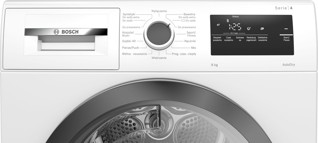 - czujnik wilgotności, ochrona przed zagnieceniami, wybór stopnia suszenia