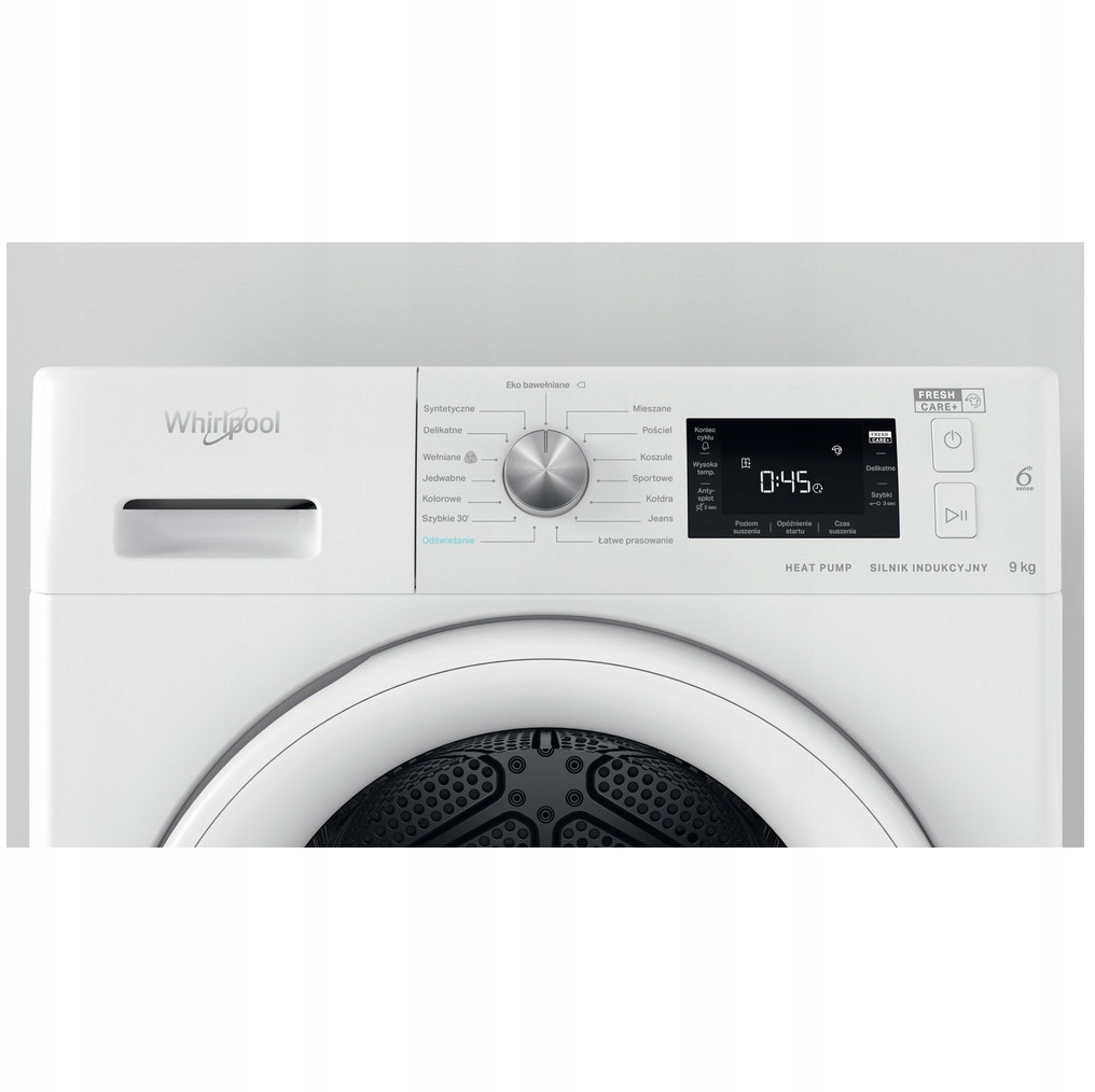 Cechy wolnostojącej suszarki bębnowej Whirlpool: wyjątkowa pojemność bębna wynosząca 9 kg, dzięki której nigdy nie zabraknie miejsca. Wyjątkowa technologia 6-ty Zmysł stale monitoruje poziom wilgotności wewnątrz bębna, chroniąc Twoje ubrania i zapewniając perfekcyjne rezultaty. Technologia pompy ciepła skutecznie ponownie podgrzewa powietrze w urządzeniu, znacząco ograniczając zużycie energii.