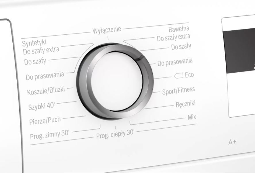 Programy specjalne: Super 40, Koszule/Bluzki, Pierze/Puch, Ręczniki, Mix, Sport/Fitness, Zimny 30 min., Ciepły 30 min.
