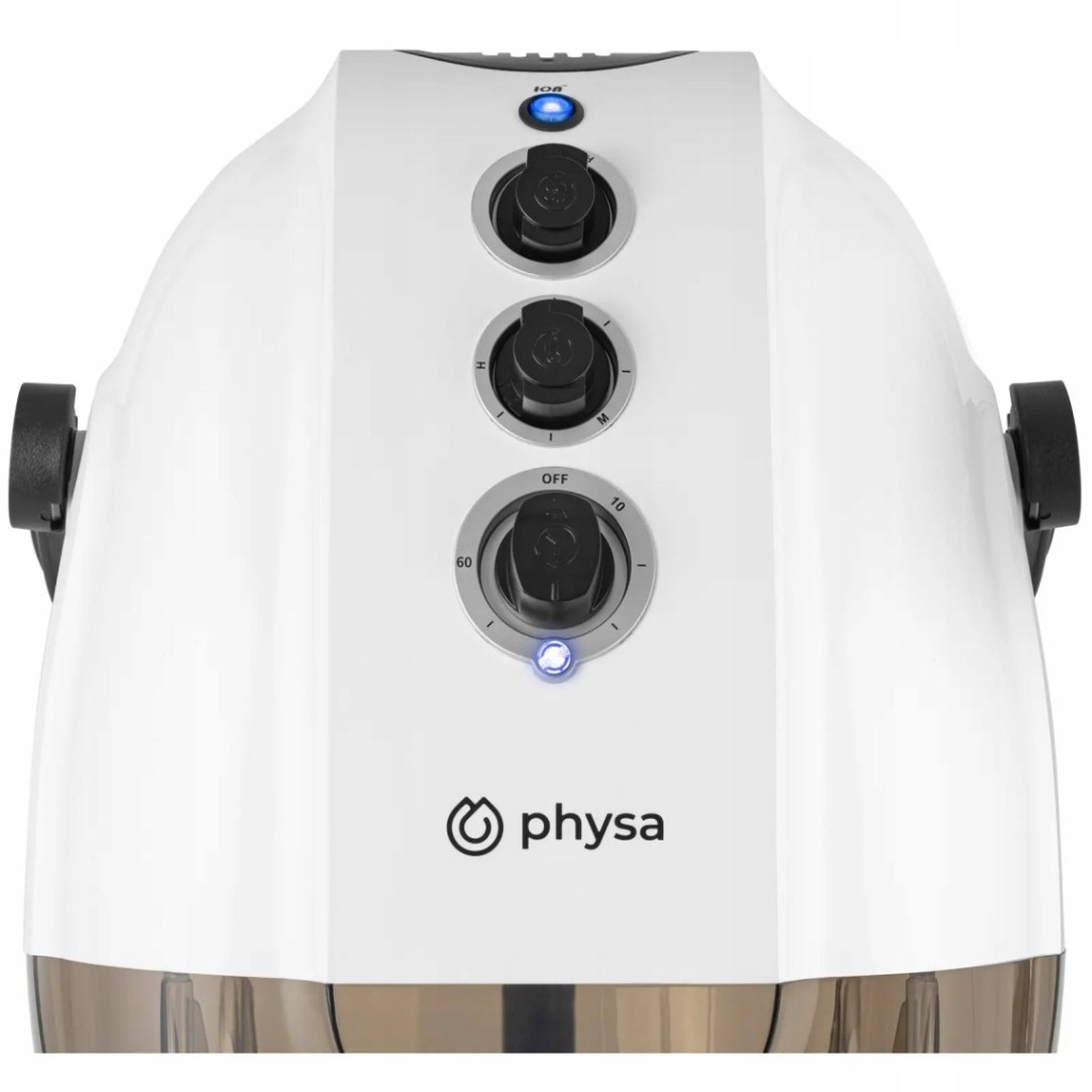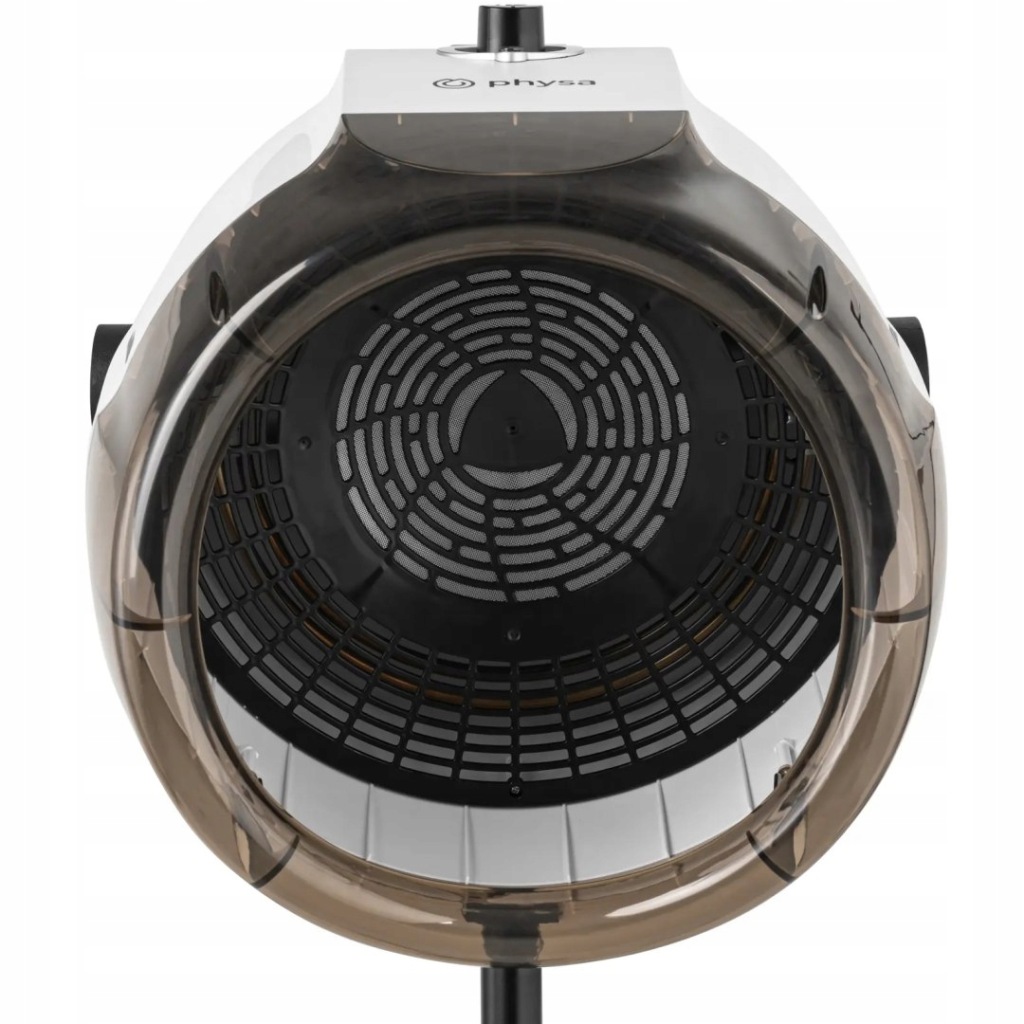Suszarka do włosów marki physa z jonizacją zapewni klientom mnóstwo miejsca i swobody. Z suszarką hełmową można bez problemu stworzyć rożne stylizacje. Co więcej, w pełni pozwala wykorzystać odżywki i maski. Model specjalnie opracowano do codziennego użytku w salonach kosmetycznych, strefach SPA i hotelach wellness, ale dobrze sprawdzi się również w domu. Suszarka hełmowa suszy z mocą 1000 W i temperaturą do 70°C. Pozwala oszczędzić mnóstwo czasu w swoim salonie. Różne poziomy grzania i przepływu powietrza intuicyjnie ustawia się bezpośrednio na hełmie. Statyw jest wytrzymały i posiada wygodną regulację wysokości w zakresie 123 - 160 cm. Aby uzyskać optymalne rezultaty, wystarczy przechylić suszarkę i skierować strumień ciepłego powietrza indywidualnie na klientów. Model ten posiada funkcję jonizacji, która pozwala na szybsze suszenie i modelowanie włosów w delikatnych niskich temperaturach oraz uzyskanie lśniących rezultatów. Za pomocą timera można określić optymalny czas trwania zabiegu do 60 minut. Automatyczne wyłączenie w przypadku przegrzania zapewni dodatkowe bezpieczeństwo. Dzięki pięciu płynnie działającym kółkom i długiemu przewodowi zasilającemu suszarka hełmowa jest również bardzo mobilna. Swobodnie można wykorzystać ją w w różnych częściach salonu.