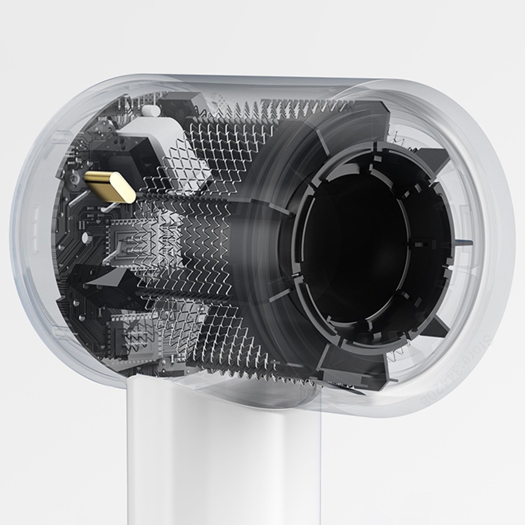 Jedną z najciekawszych cech tej suszarki do włosów jest jej zdolność do osiągania dużej prędkości powietrza. Wyposażona jest w mocny silnik bezszczotkowy, który w najmocniejszym trybie sięga do 110 000 obr / min. Dzięki temu może generować strumień powietrza z dużą prędkością do 223 km/h.