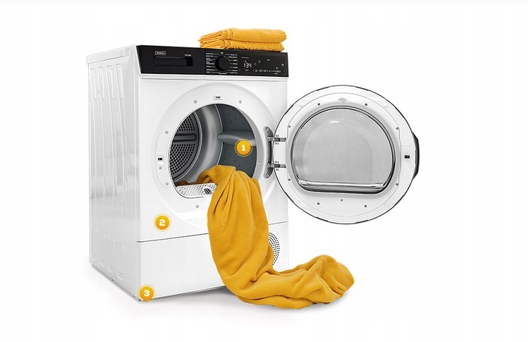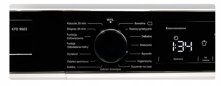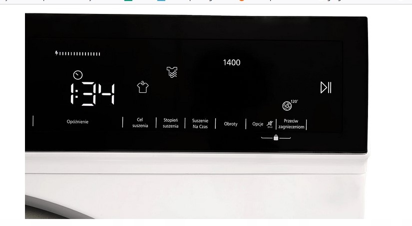 ✅Dodatkowe informacje: Wskaźnik informujący o stopniu wysuszenia odzieży - Wskaźnik informujący o aktywacji funkcji antyzagnieceniowej - Dezatywacja sygnałów dźwiękowych - Rewersyjne ruchy bębna