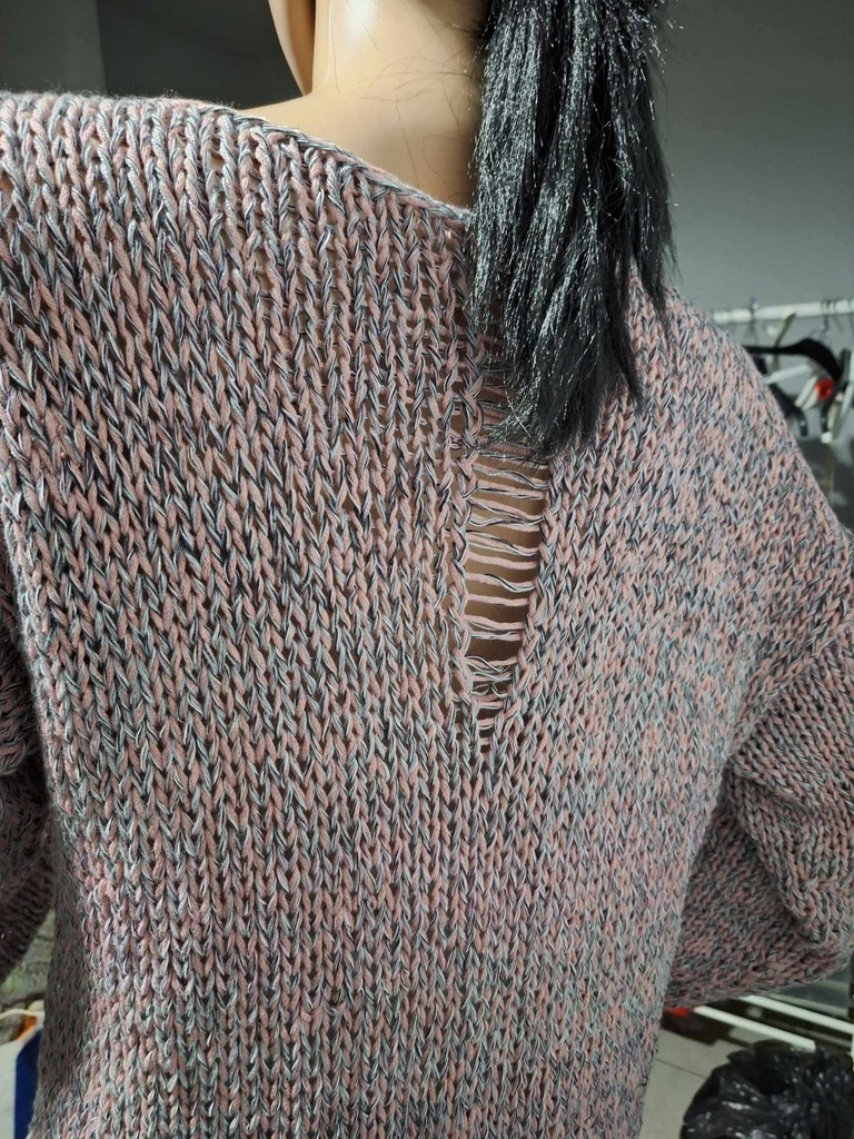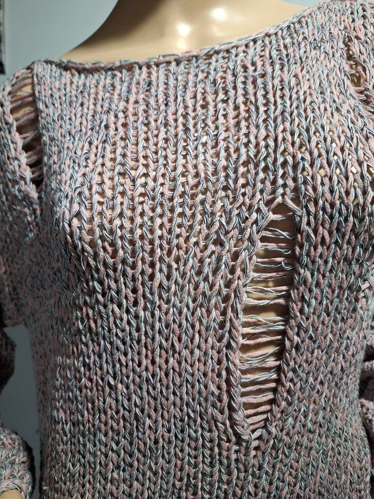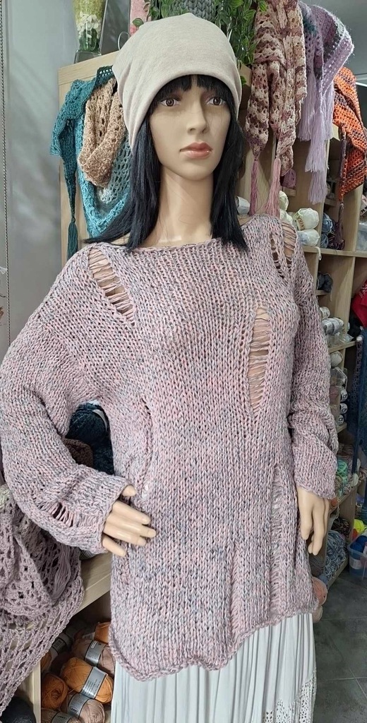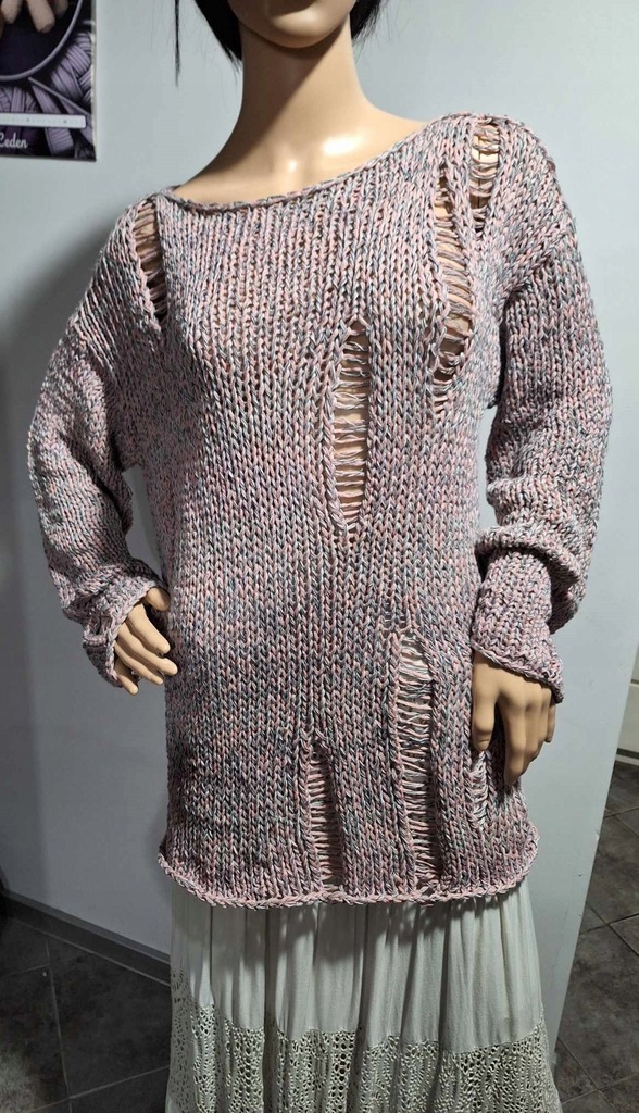 Oryginalny fantazyjny dłuższy sweter , z efektem prucia