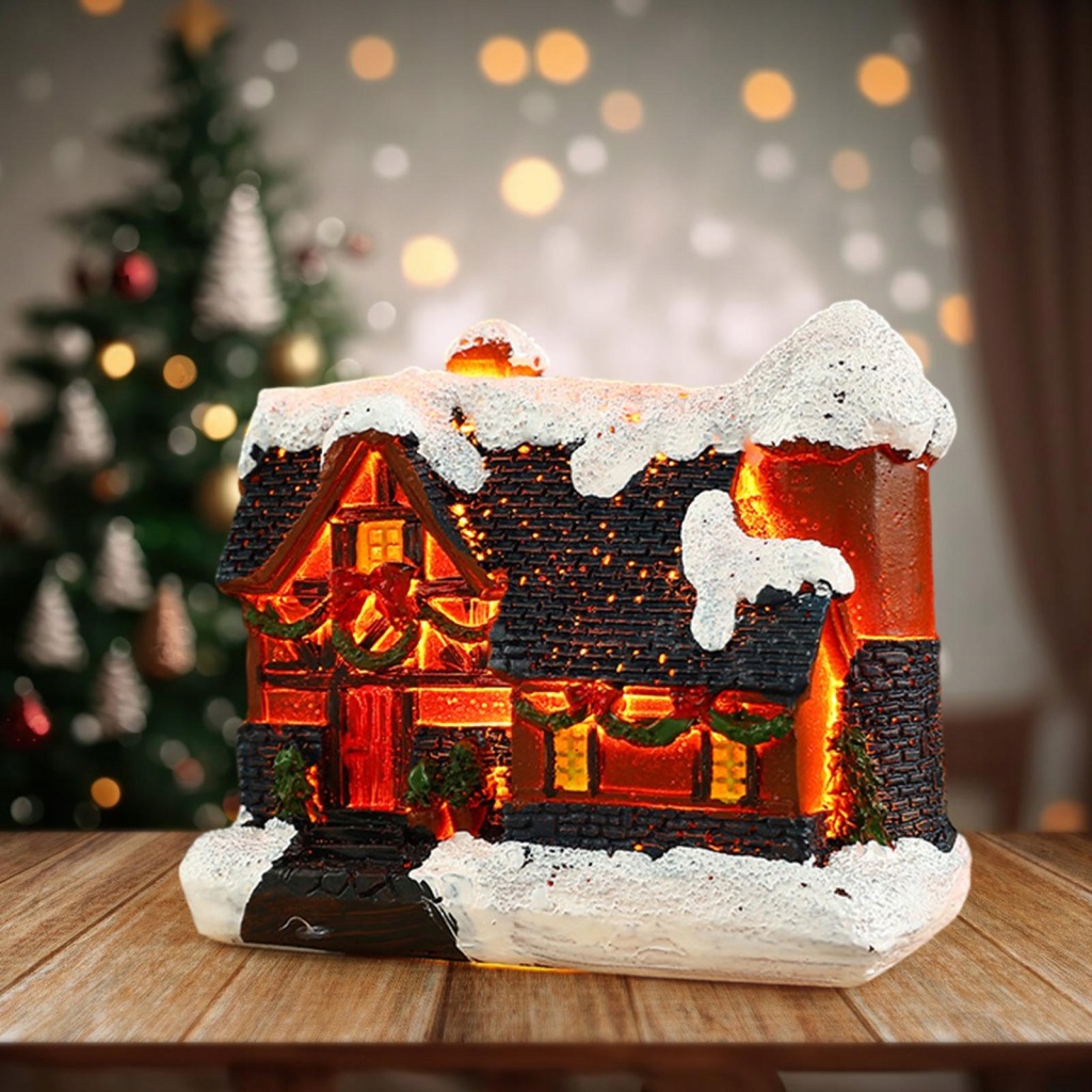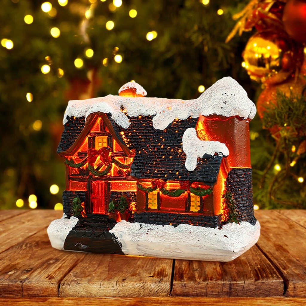 Świąteczny dom ze śniegiem Mini świąteczna wioska Scena na ozdoby na biurko w stylu A