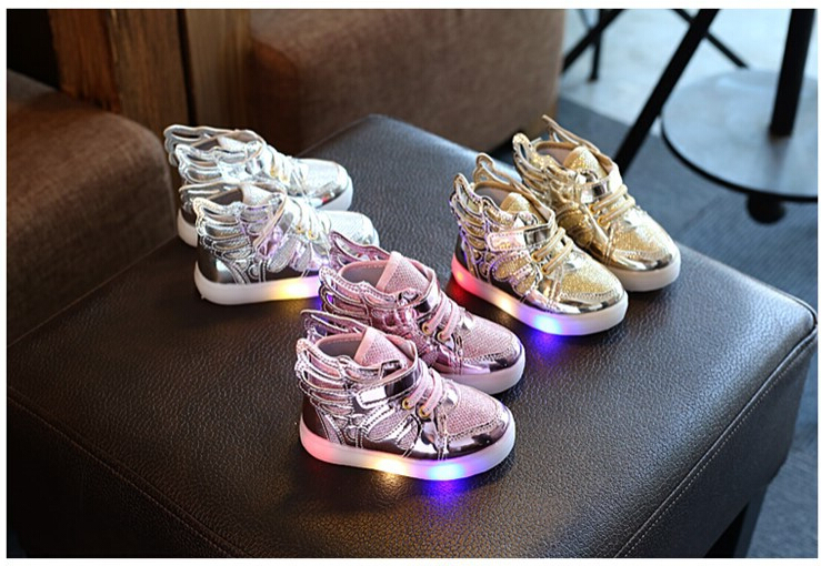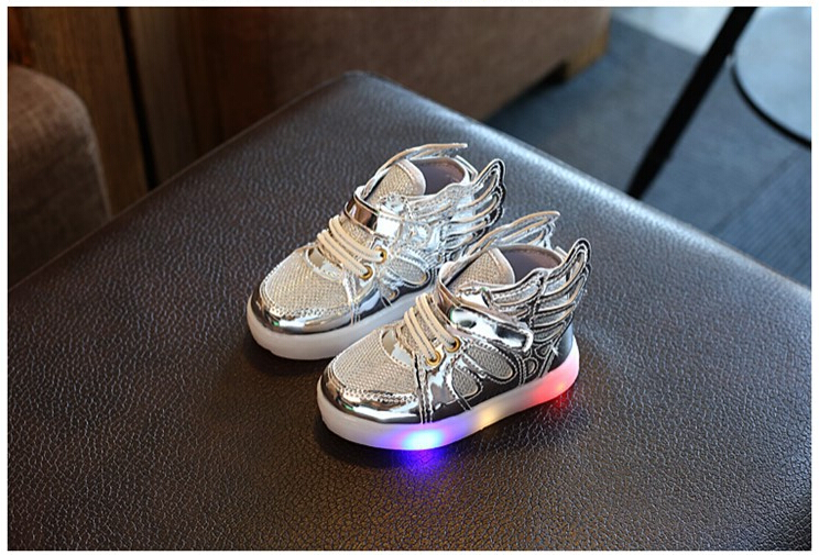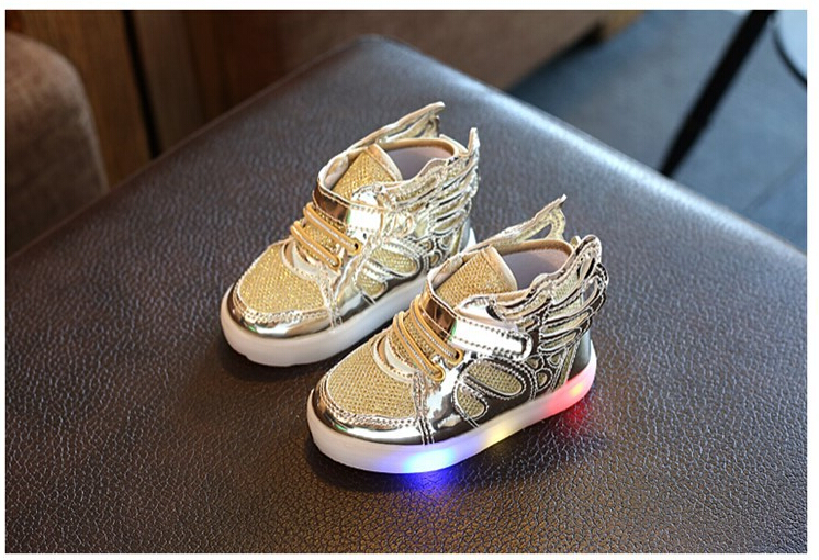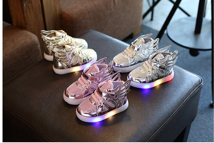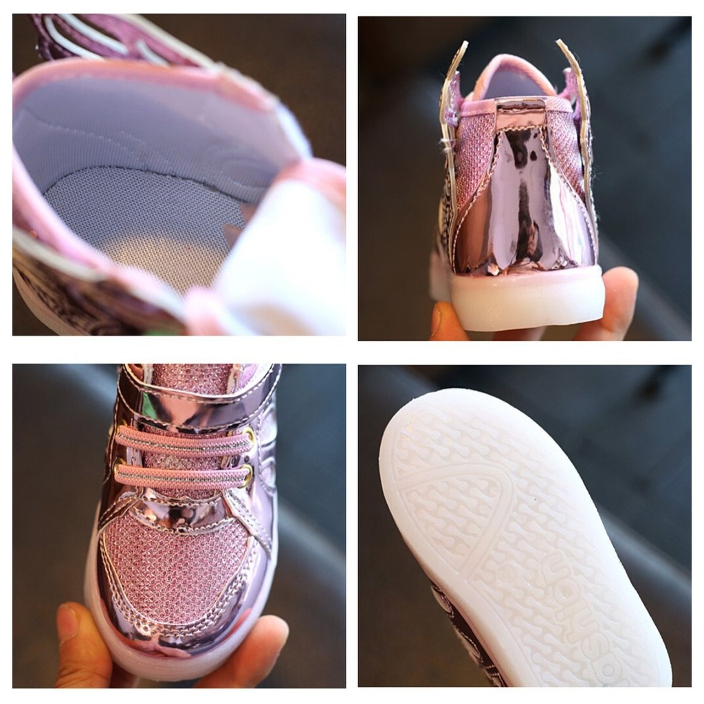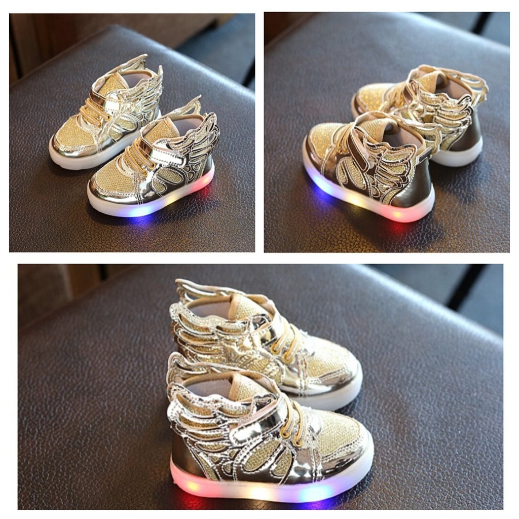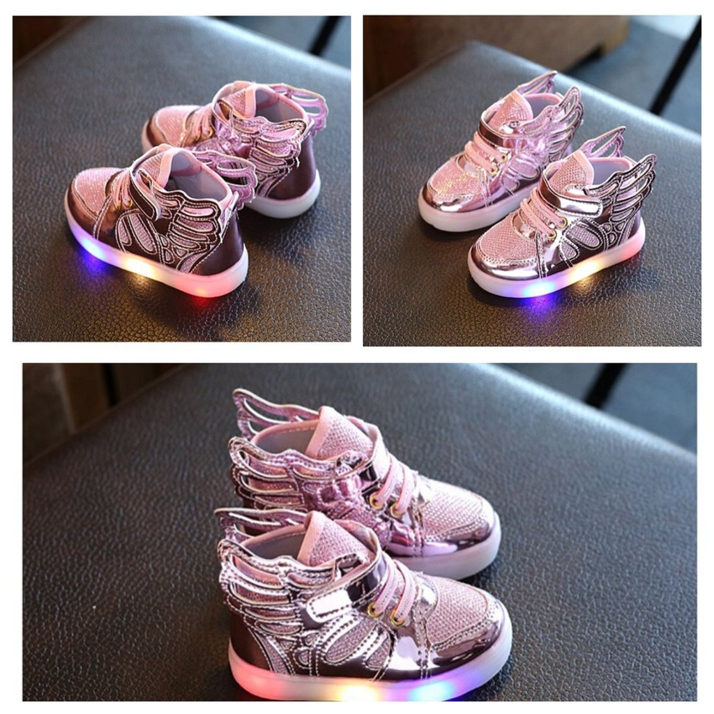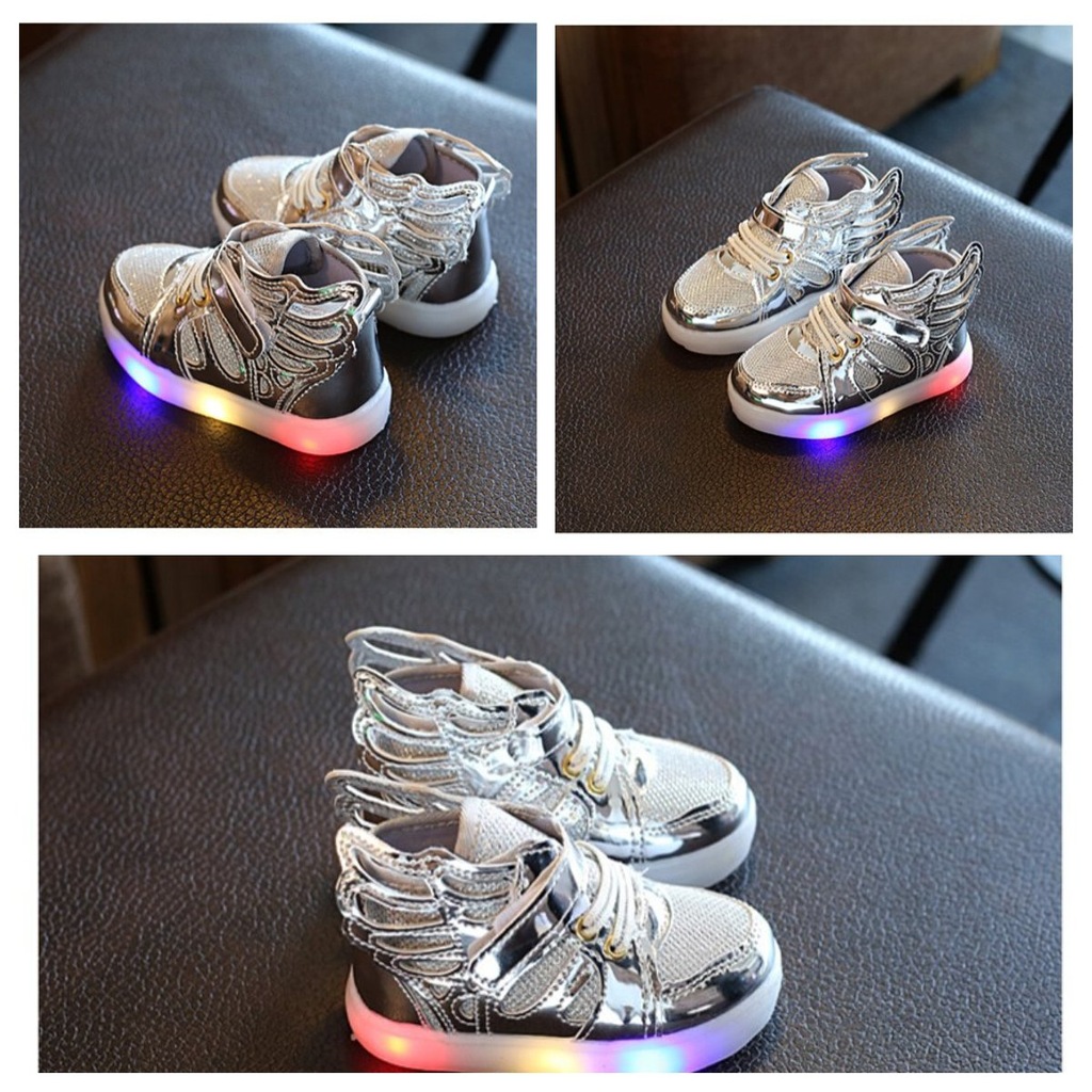 Oferuję śliczne butki z ozdobnymi skrzydełkami po bokach i ze świecącą podeszwą.