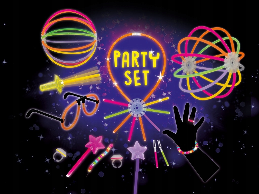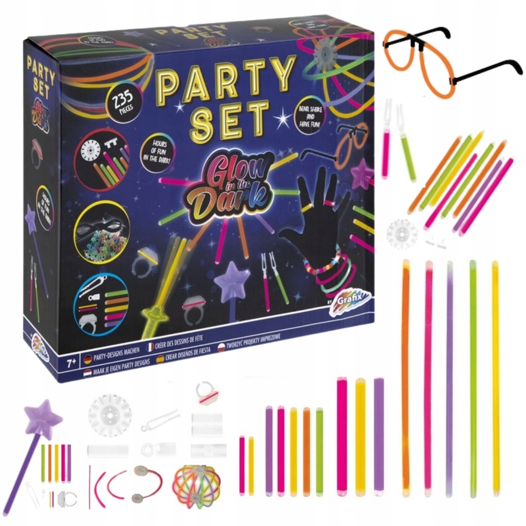 WIELKI składający się z 235 elementów ZESTAW ŚWIECĄCYCH GADŻETÓW - IDEALNY NA SZALONE, KOLOROWE PRZYJĘCIA. Produkt oryginalny renomowanej firmy GRAFIX.