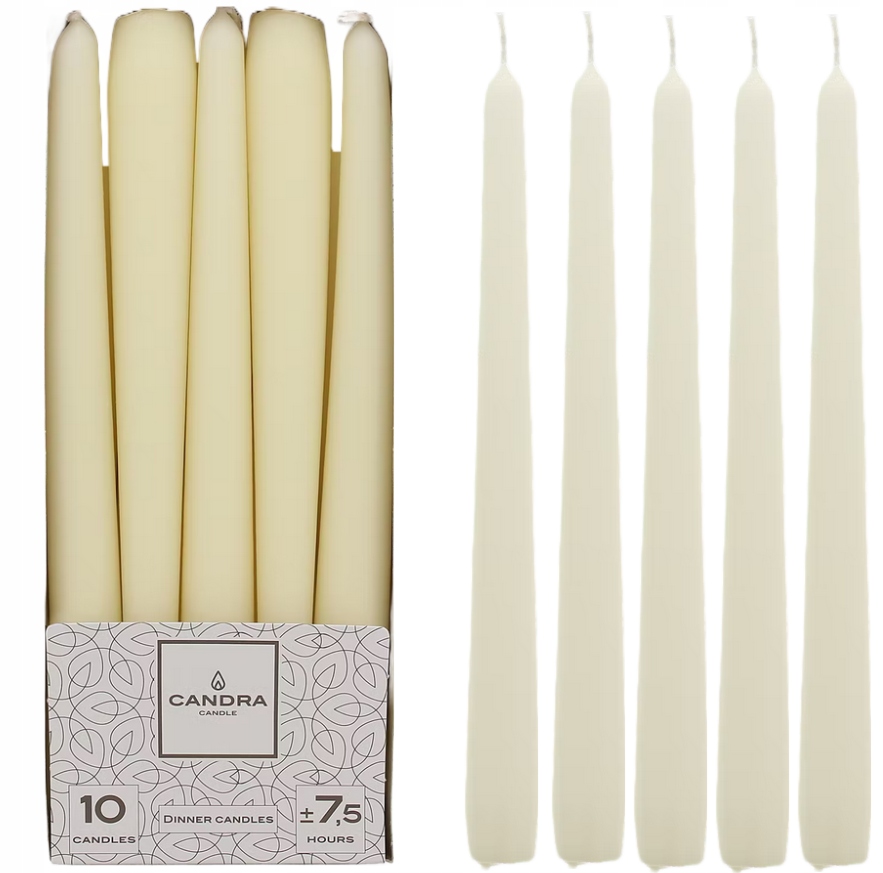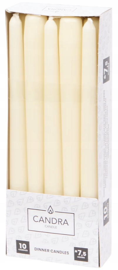 ŚWIECE ŚWIECZKI STOŁOWE STOŻKOWE DŁUGIE ELEGANCKIE KREMOWE DEKORACJE 10 SZ.