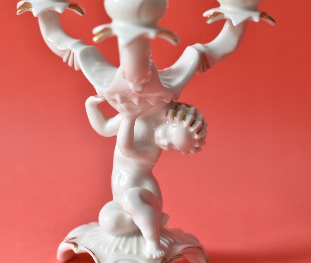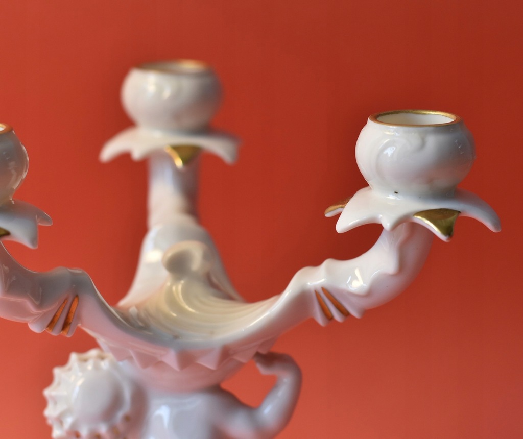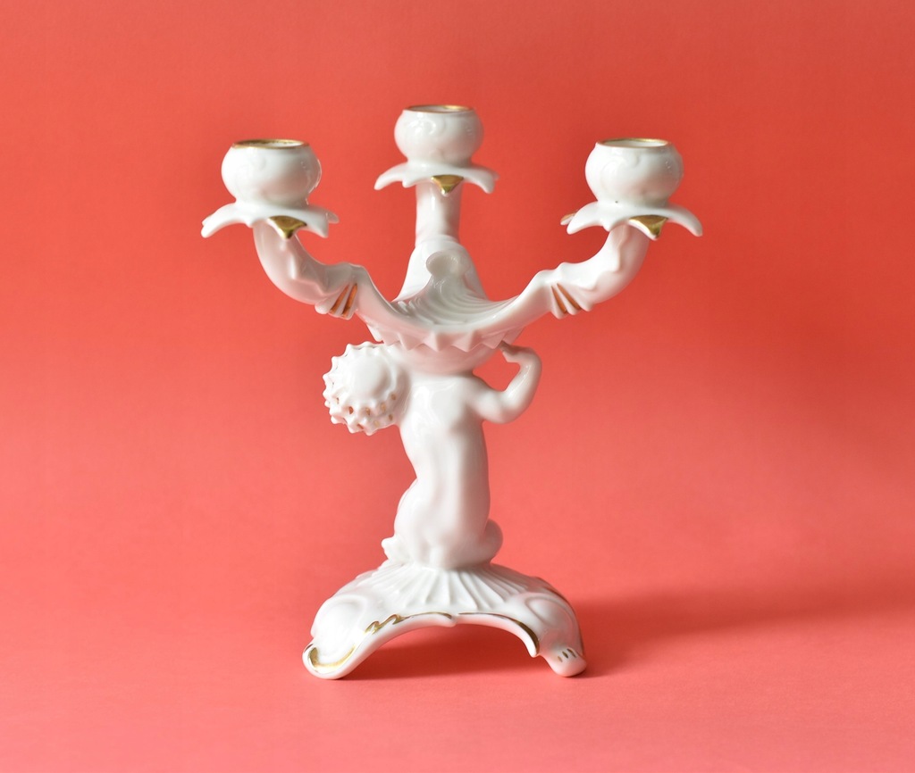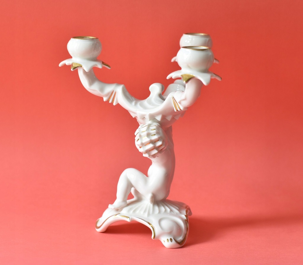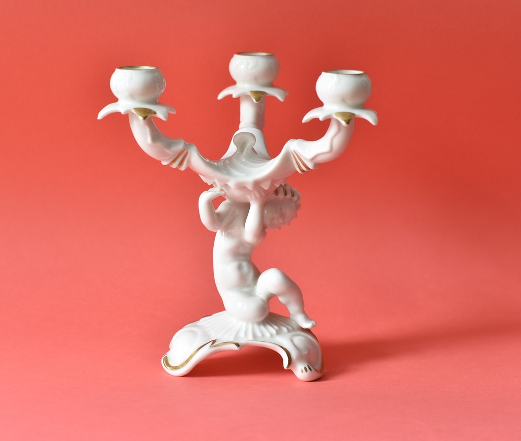 Świecznik figuralny trójramienny w stylu art deco z niemieckiej manufaktury Hutschenreuther Selb. Projekt Karla Tuttera.