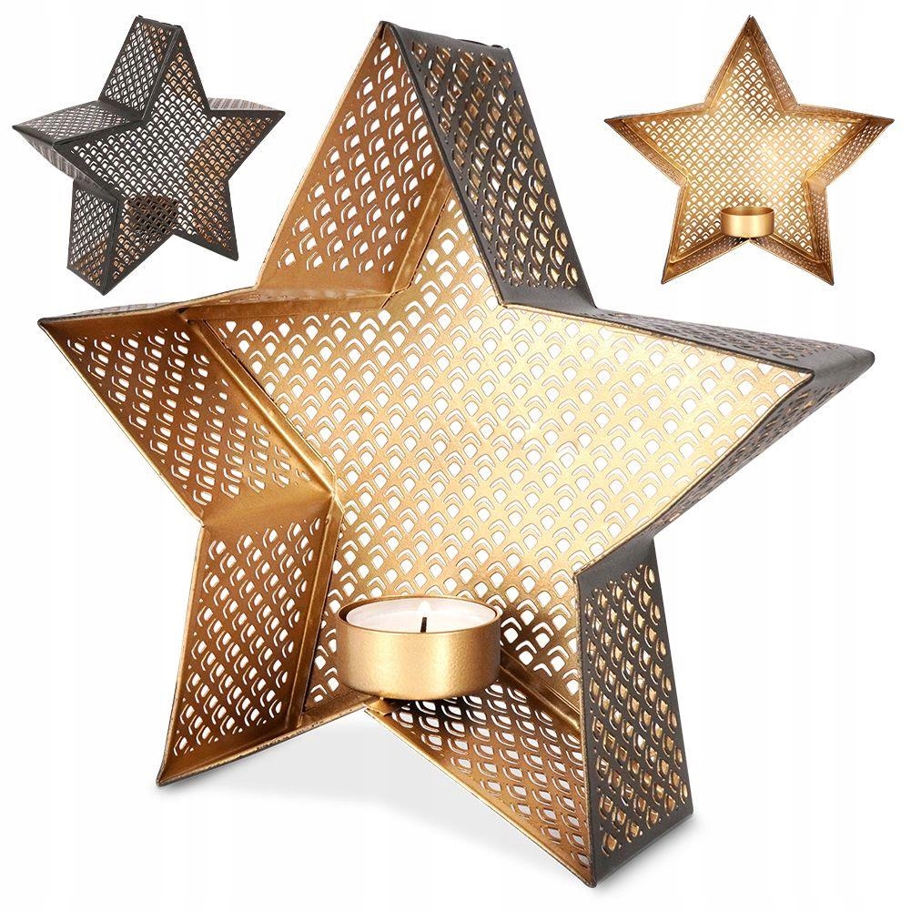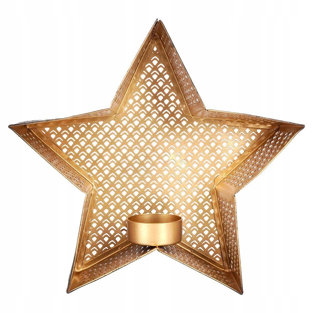 Świecznik w kształcie gwiazdy o wymiarach 21 x 20 cm. Idealny na świeczki typu tealight o maksymalnej średnicy 4 cm.