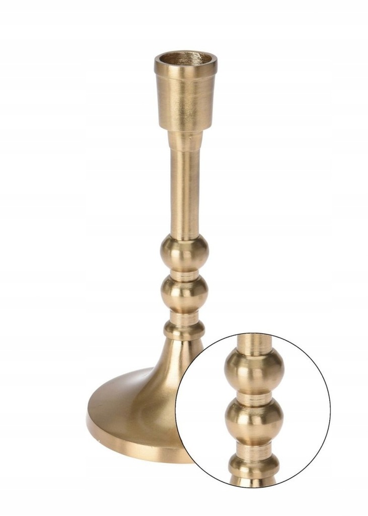 Świecznik aluminiowy stojak podstawka na długą świecę świeczkę złoty 17 cm
