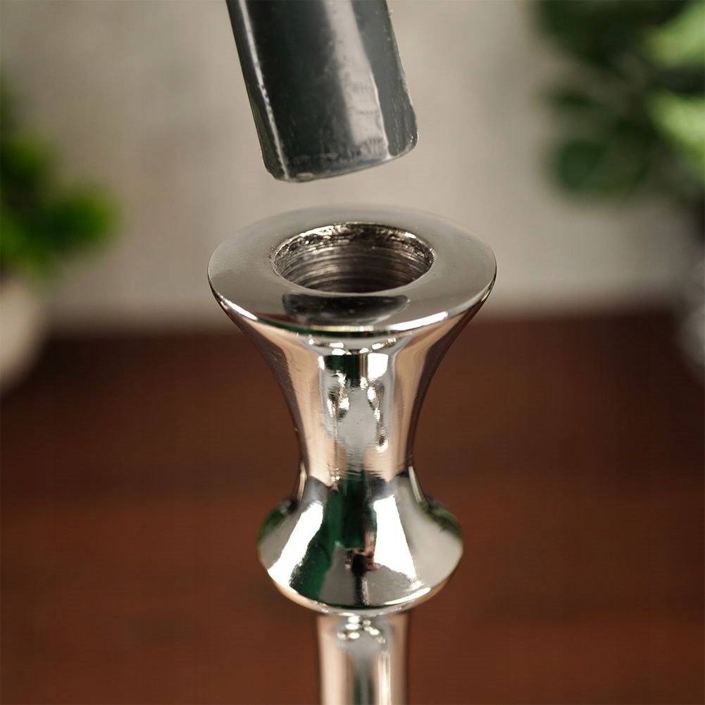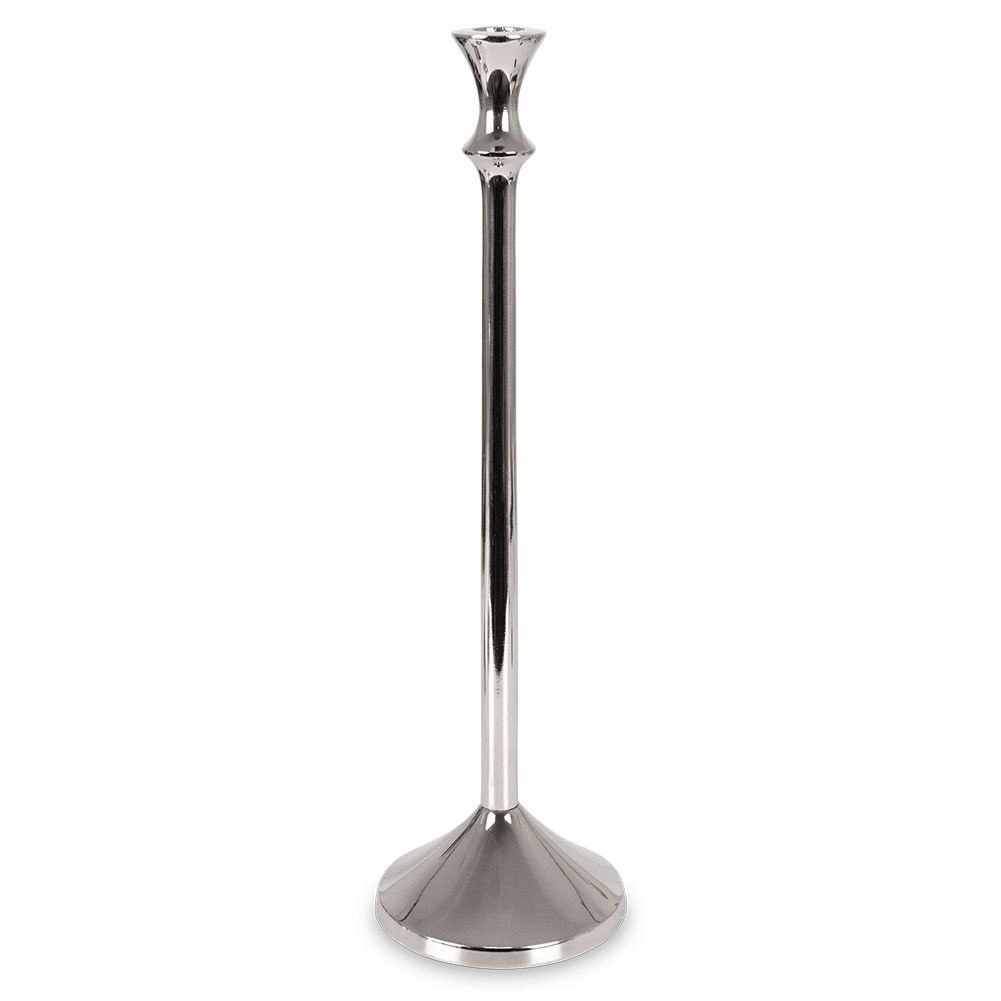 Świecznik na długą świeczkę aluminiowy srebrny 40 cm