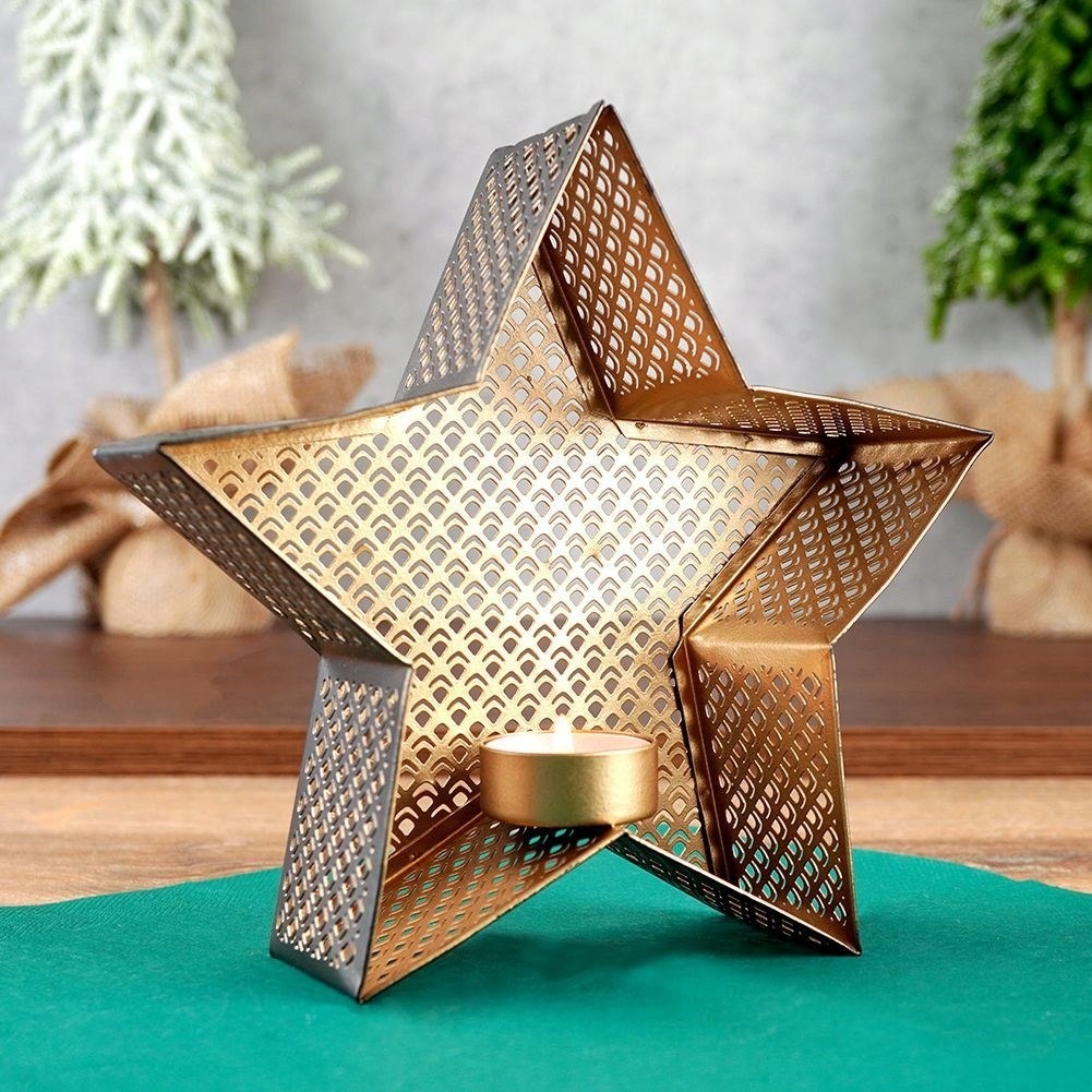 - NA TEALIGHT - Świecznik w kształcie gwiazdy o wymiarach 21 x 20 cm. Idealny na świeczki typu tealight o maksymalnej średnicy 4 cm.