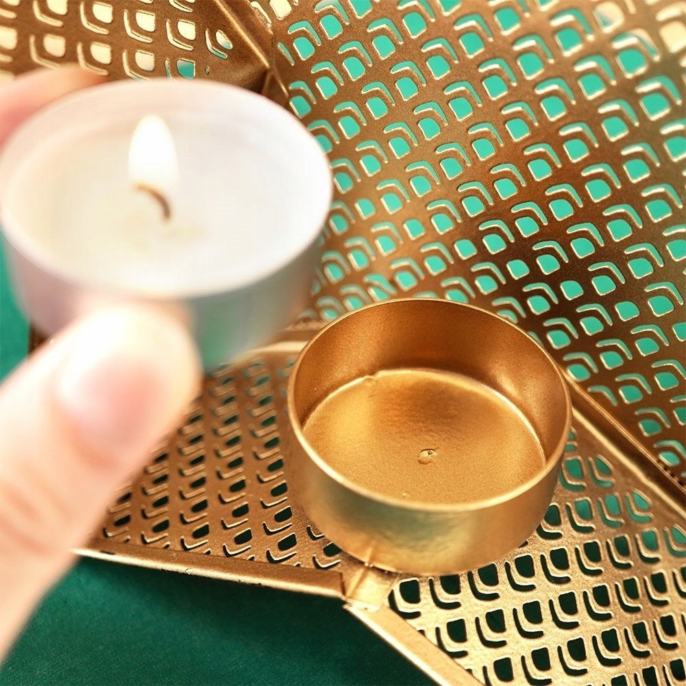 Świecznik na świeczkę tealight aluminiowy złoty czarny gwiazda 21x20 cm