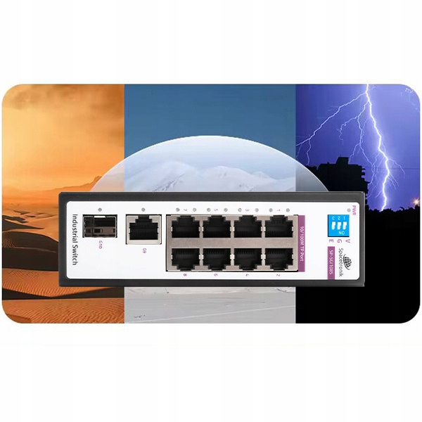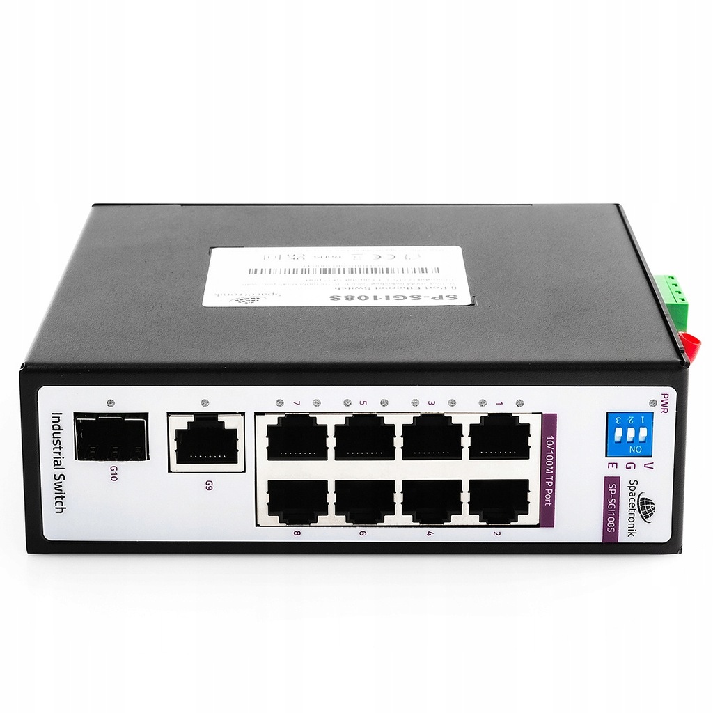 10 portowy SWITCH przemysłowy Spacetronik 8x port 10/100Mbps + 1x Uplink Ethernet port RJ45 1Gbps + 1x SFP port 1Gbps SP-SGI108S