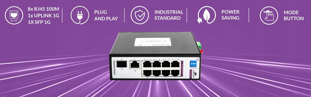 SWITCH 8x port RJ45 100Mbps +1x port SFP +1x Uplink 1 Gbps Przemysłowy DIN