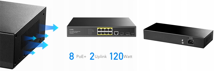 - Switch Cudy GS1010PE 8-PORT GIGABIT POE+ 120W 2XGBE Uplink