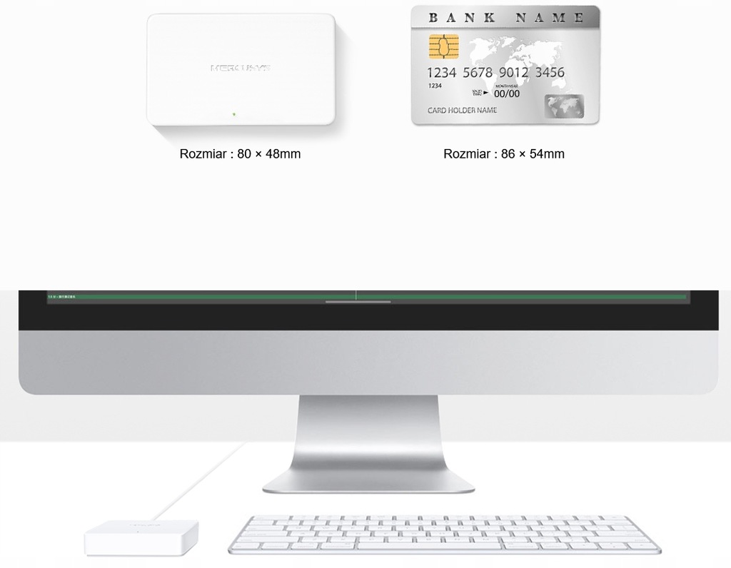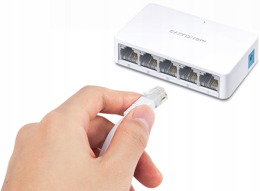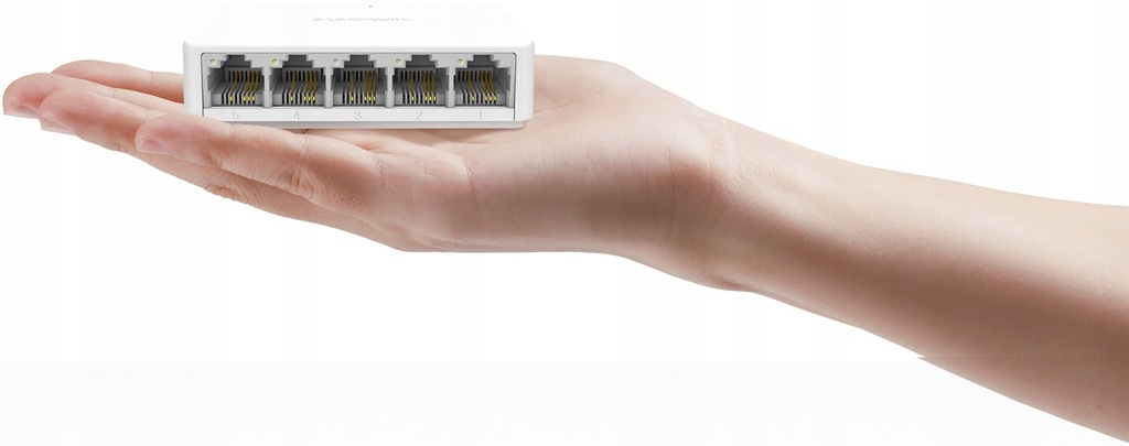 Mercusys MS105 to niewielki przełącznik / switch zamknięty w obudowie typu desktop. Ma wymiary 80x48 mm, a więc mniejsze niż rozmiar standardowej karty kredytowej. Posiada 5 portów fast Ethernet wspierających automatyczną negocjację i automatyczne krosowanie MDI/MDIX. Urządzenie jest typu "plug and play" - nie wymaga wstępnej konfiguracji, działa od razu po podłączeniu.