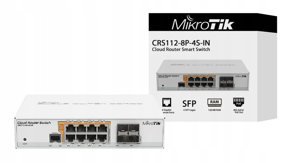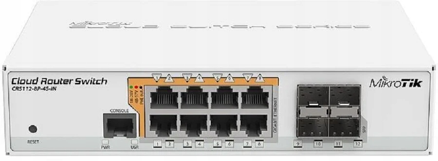 Switch MIKROTIK CRS112-8P-4S-IN Gigabit Ethernet, 12 portów, Funkcja PoE, Zarządzalny