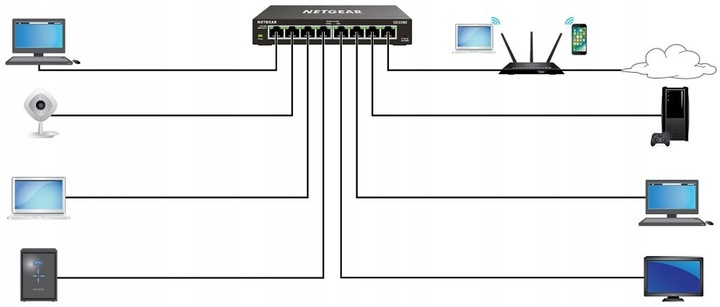 - Maksymalna przepustowość sieci przewodowej dzięki architekturze przełączania bez blokowania