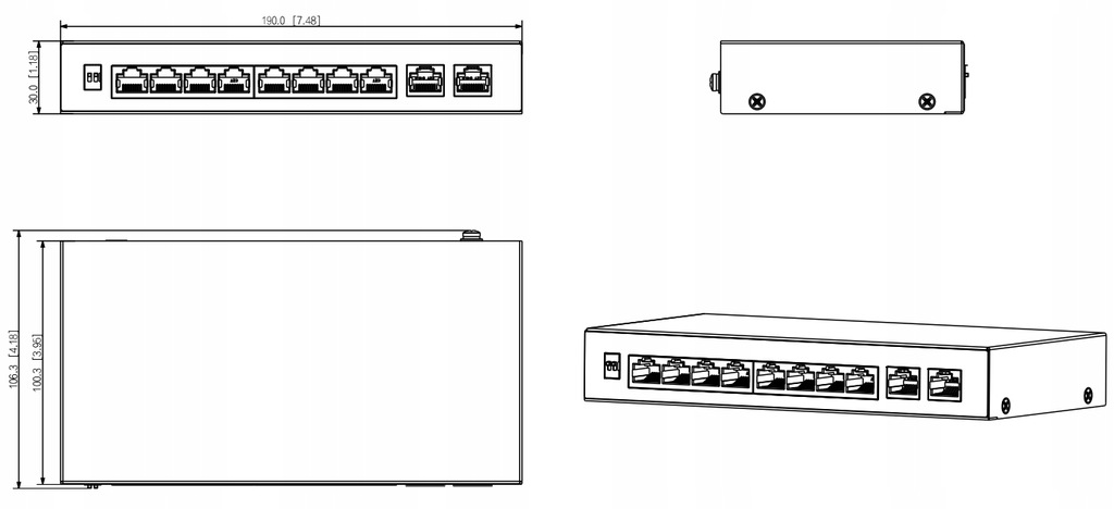 - 10 / 100 / 1000 Mb/s - 8 Portów LAN & PoE,